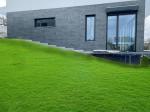 Дом имеет общую площадь 350м2. Построен в 2021 году, монолитно-каркасный, фасад утепленный мин. ватой+штукатурка, потолок мембрана+утеплитель (под солнечные панели), перекрытие монолит, окна Reynaers, автоматические роллеты, сигнализация, дом строился на сваях.