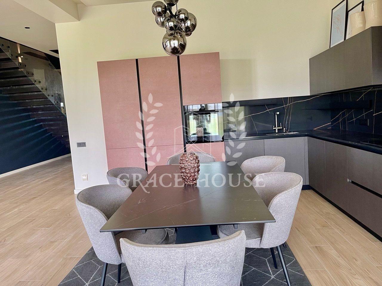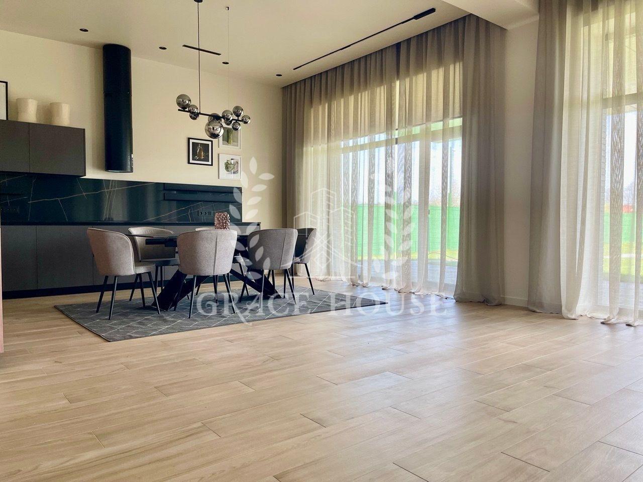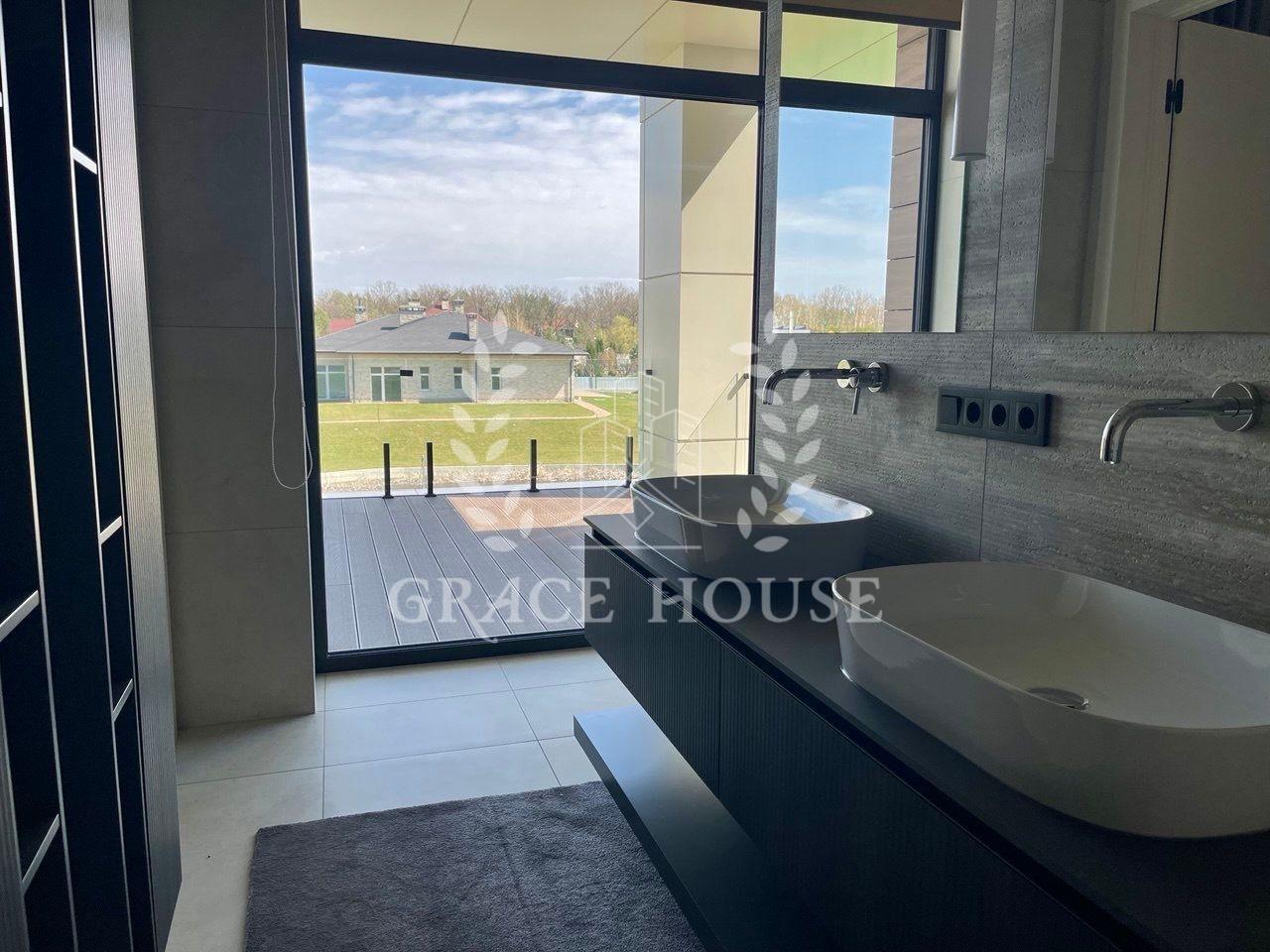 Романків. Сучасний будинок в котеджному містечку, загальна площа 400 м.кв. H=3.0m. рік забудови 2023, армований фундамент, червона цегла, утеплення фасаду мінвата 200мм. вітальня студія 50 м.кв., 5 спальних кімнат, 5 сан.вузлів, котельня, гардеробні кімнати, гараж на два авто, панорамні вікна, велика тераса, балкон. Заведені всі комунікації, система приточно-витяжної вентиляції. Земельна ділянка 12 соток з виходом на озеро, газон, авто полив.