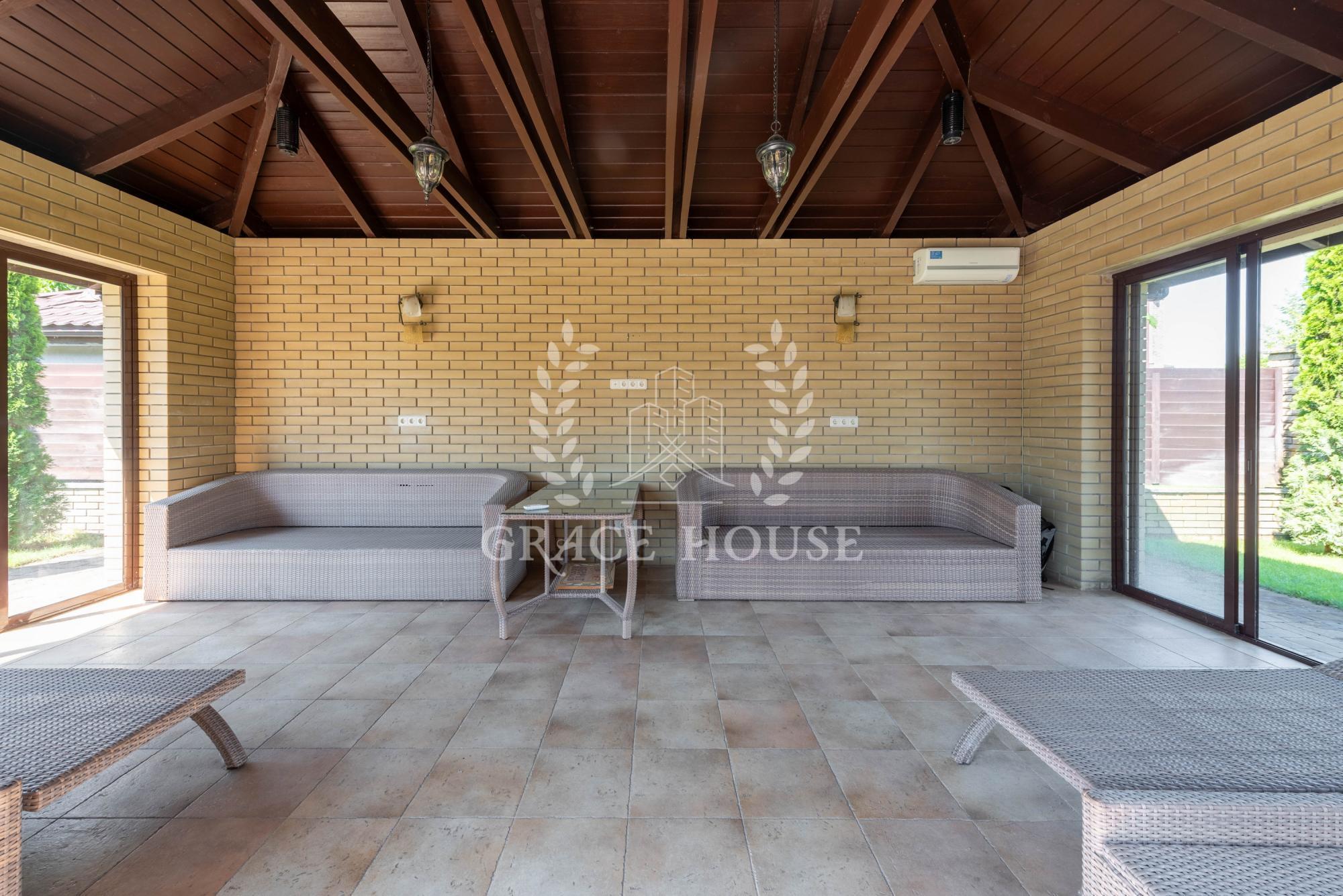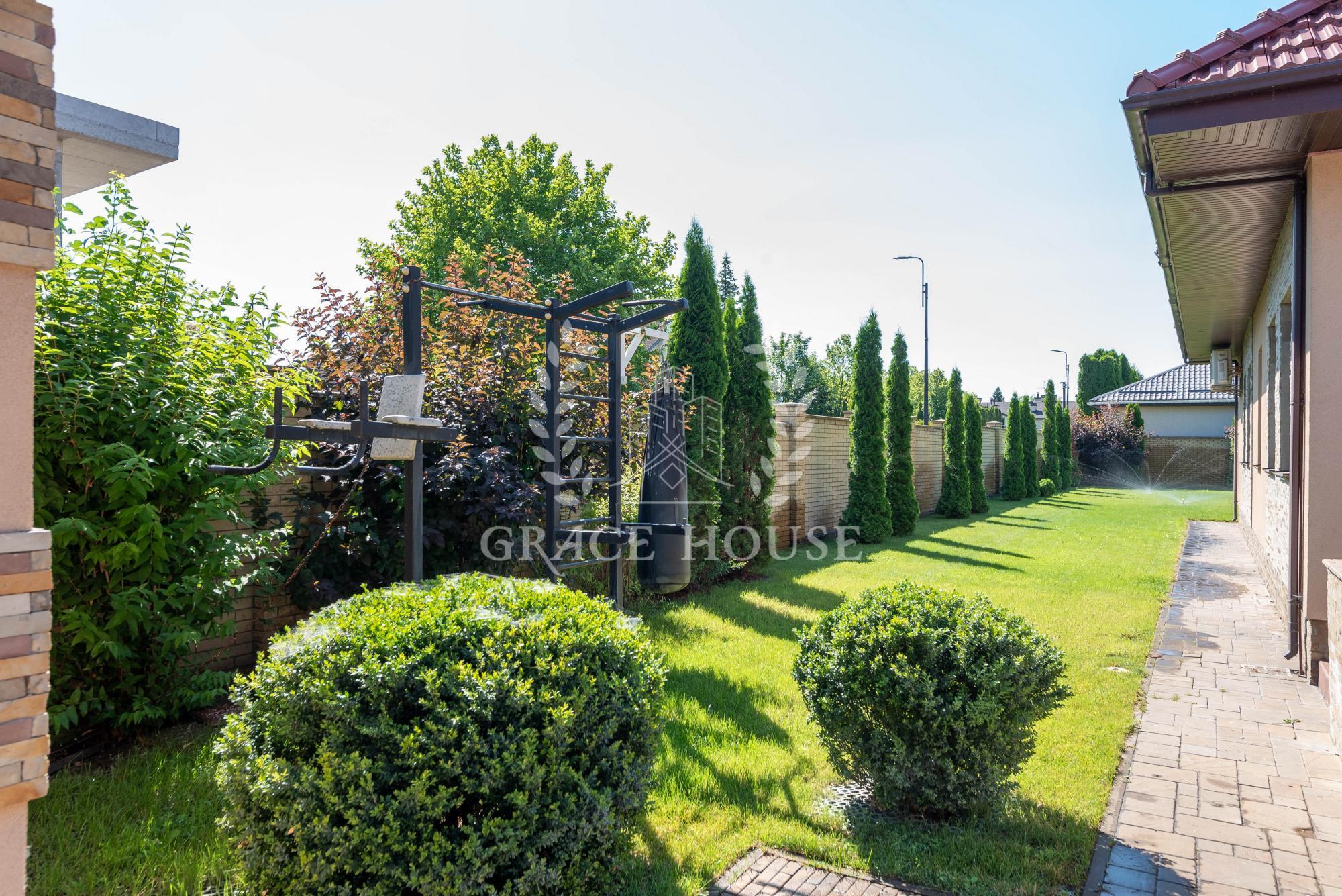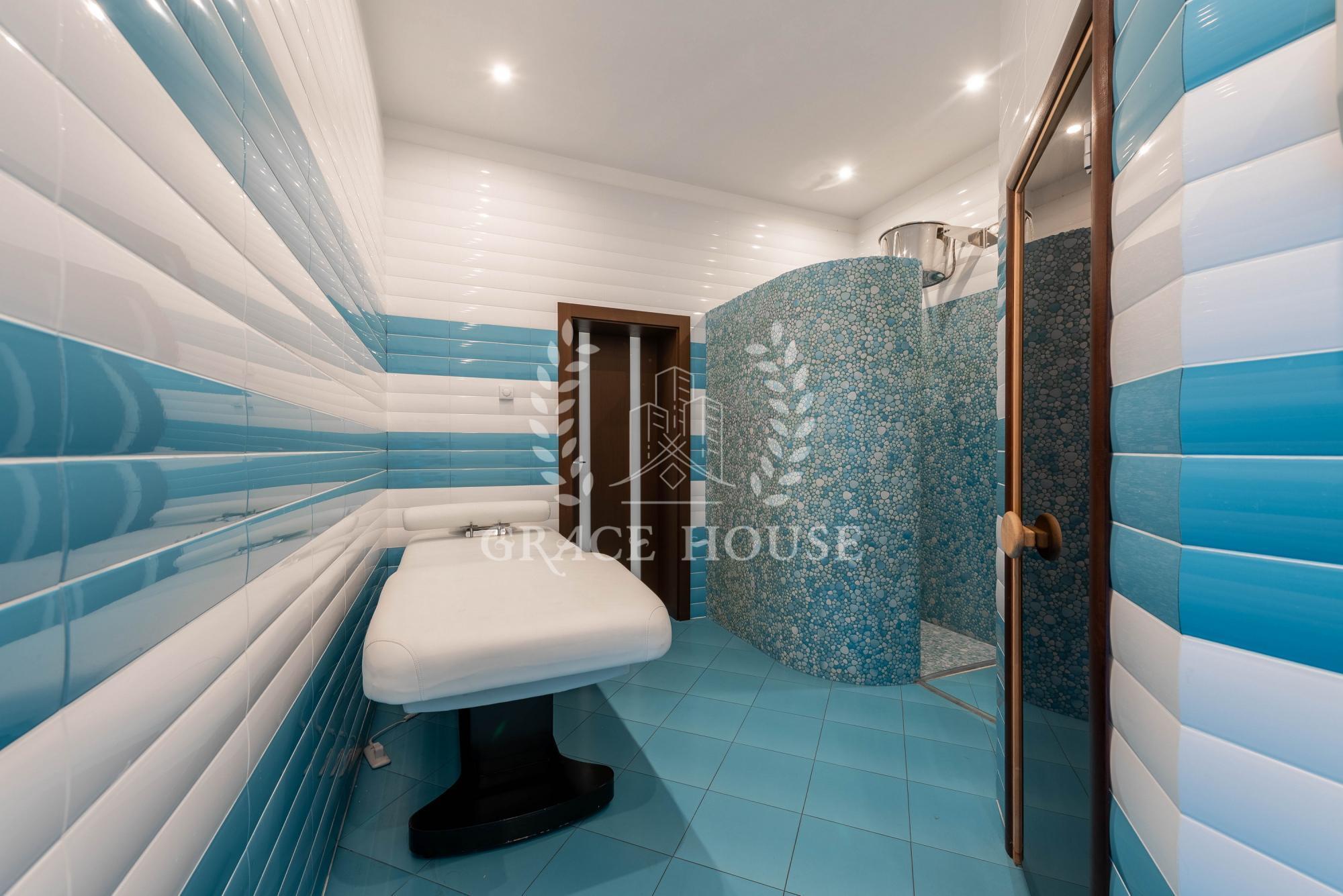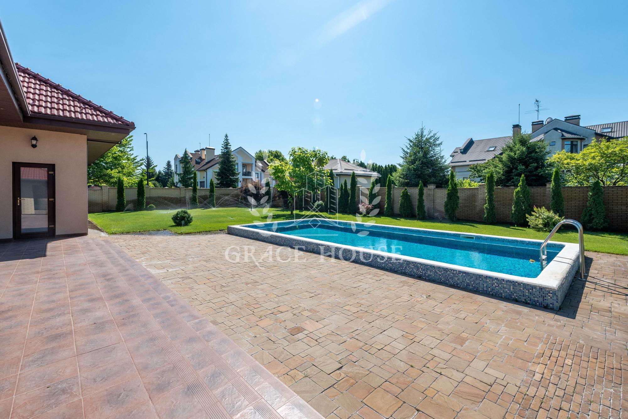 На территории 20 соток расположен основной дом, домик охраны, зона барбекю - крытая беседка, бассейн 10х5м с подогревом и противотоком, спортивная площадка
