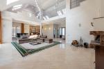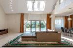 На первом этаже расположены светлая гостиная со столовой зоной, камином, выходом на террасу и вторым светом, кухня, родительская спальня со своим с/у и гардеробом, две спальни, с/у, гардероб, зона спа с сауной, тропический душ. Гараж на два авто, котельная.