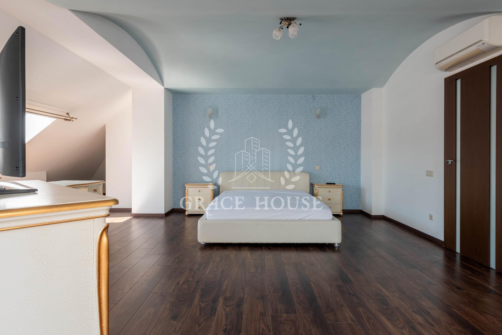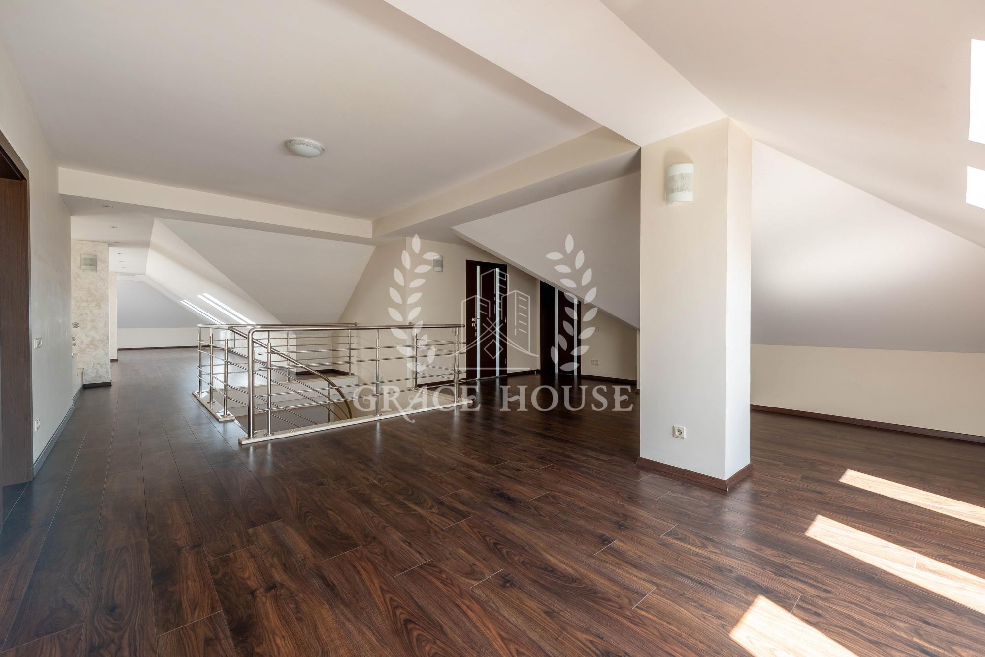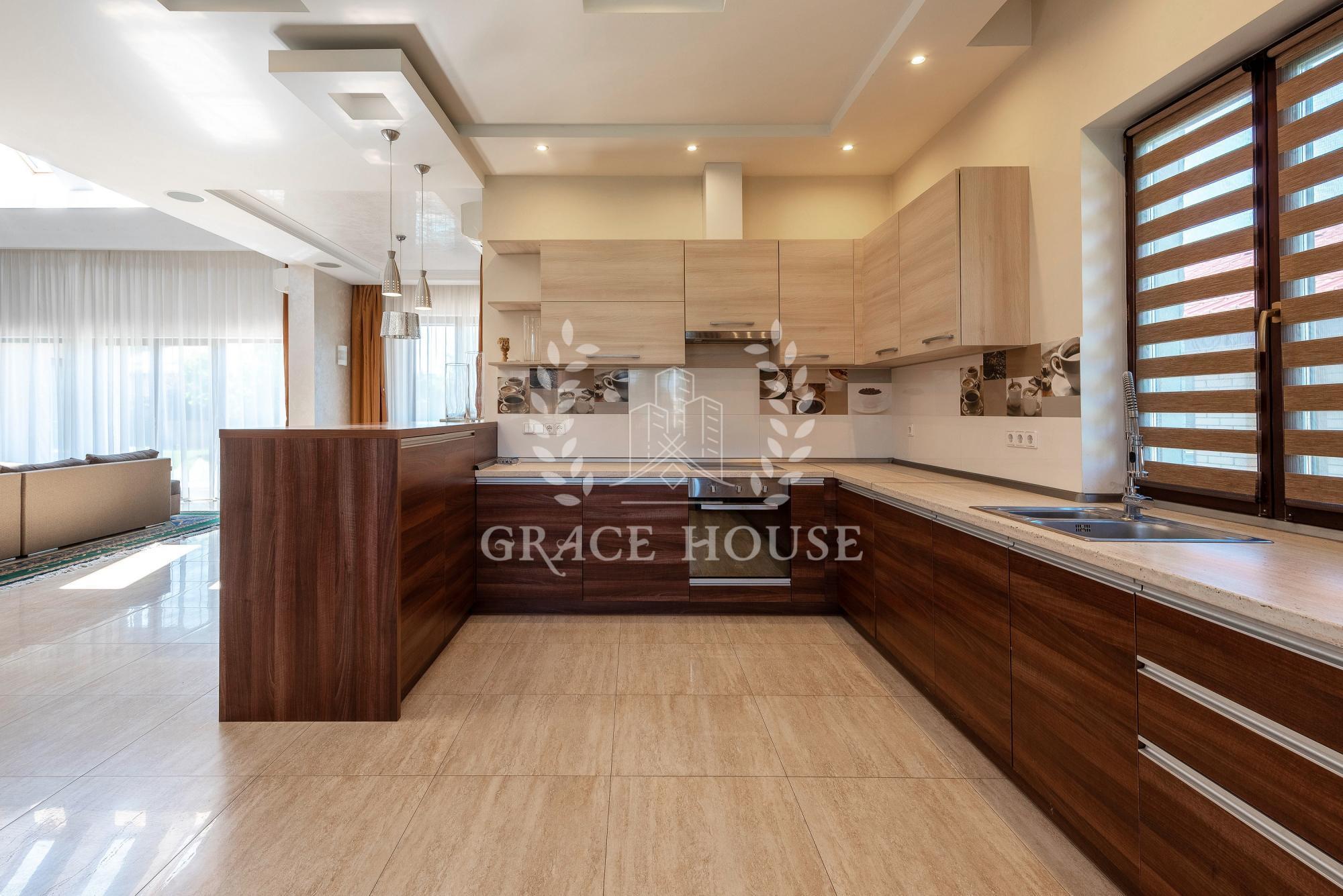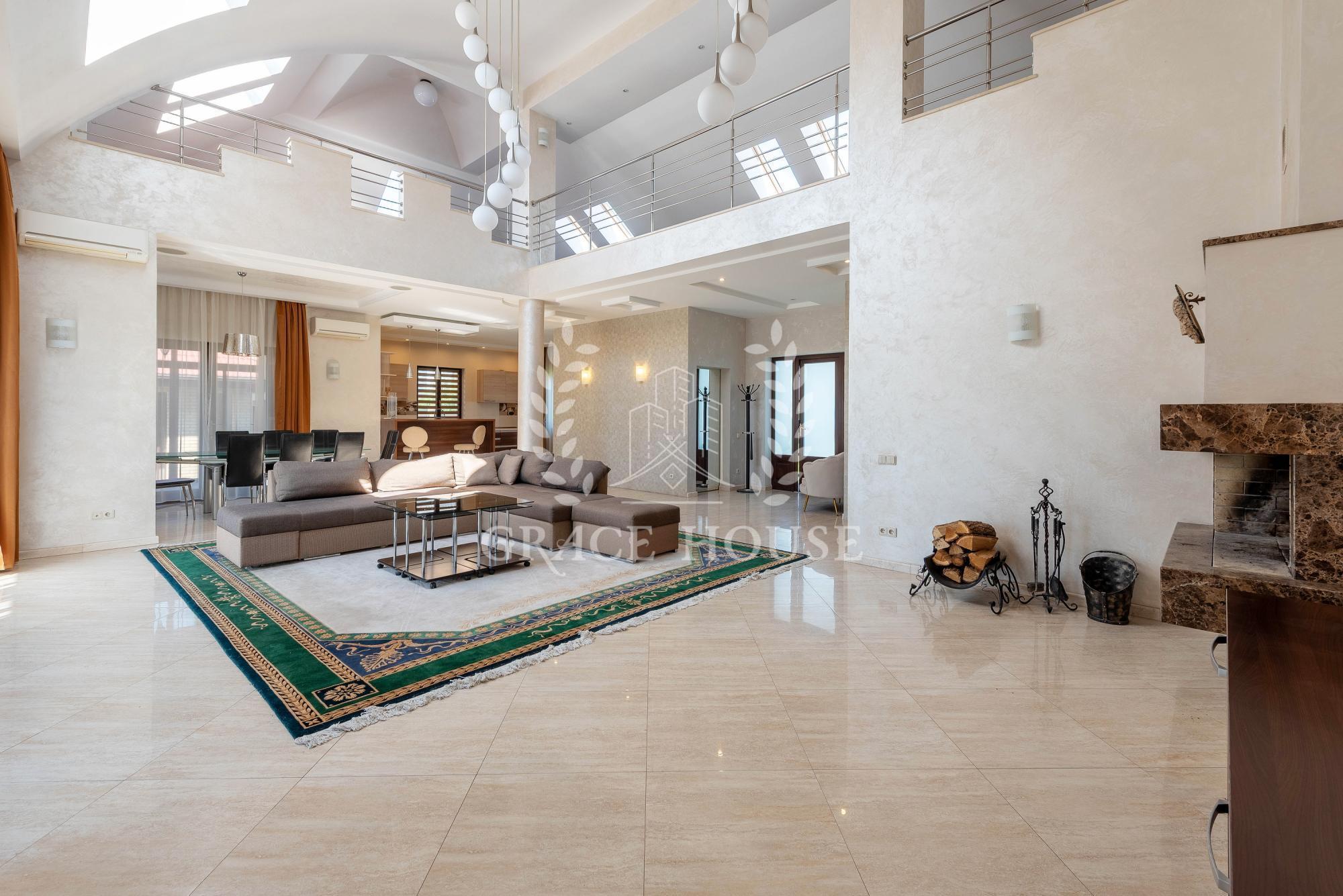 Общая площадь 550 м кв. два этажа. В доме 5 спален, 3 с/у, гараж на два авто.