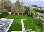 Газон , сад з плодовими деревами, квітами та кущами
