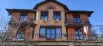 Площадь около 600 кв.м, 3 этажа + мансарда, гараж на 3 автомобиля, 6 комнат, 3 санузла, 2 террасы, 2 балкона.