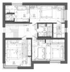 1 поверх - кухня-вітальня, гостьова спальня, санвузол, тех. кімната