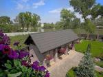 Участок 10 соток, с ландшафтным дизайном и озеленением, много деревьев. На территории - навес для авто, дом для охраны/персонала, зона барбекю, через калитку выход на набережную р.Козинка.