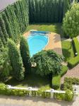 На ділянці сакура, клени, виноград та красиві троянди. Автополив. Відкрито 17-метровий басейн з протитечією та джакузі. Сигналізація, зовнішнє відеоспостереження та домофон на кожному поверсі.