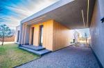 Планировка: просторная прихожая с гардеробом, открытая кухня и гостиная с панорамными окнами и выходом на террасу, мастер-спальня с собственной ванной и гардеробной, две детские комнаты, гостевой санузел, хозяйственный блок. Изюминка дома – живой канадский клен, высаженный внутри за стеклом, виден из кухни, гостиной, прихожей и ванной комнаты.