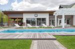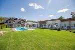 На территории: Ландшафтный дизайн, барбекю с профессиональным оборудованием, открытый бассейн с подогревом воды солнечными батареями, детская площадка.
