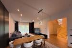 1 поверх — кухня – вітальня з виходом на терасу, гостьовий санвузол, пральна кімната, кабінет\гостьова спальня, передпокій