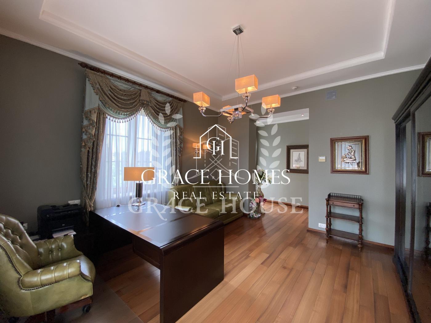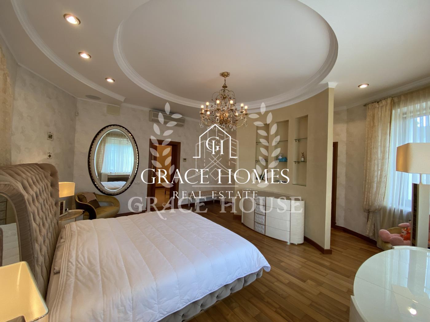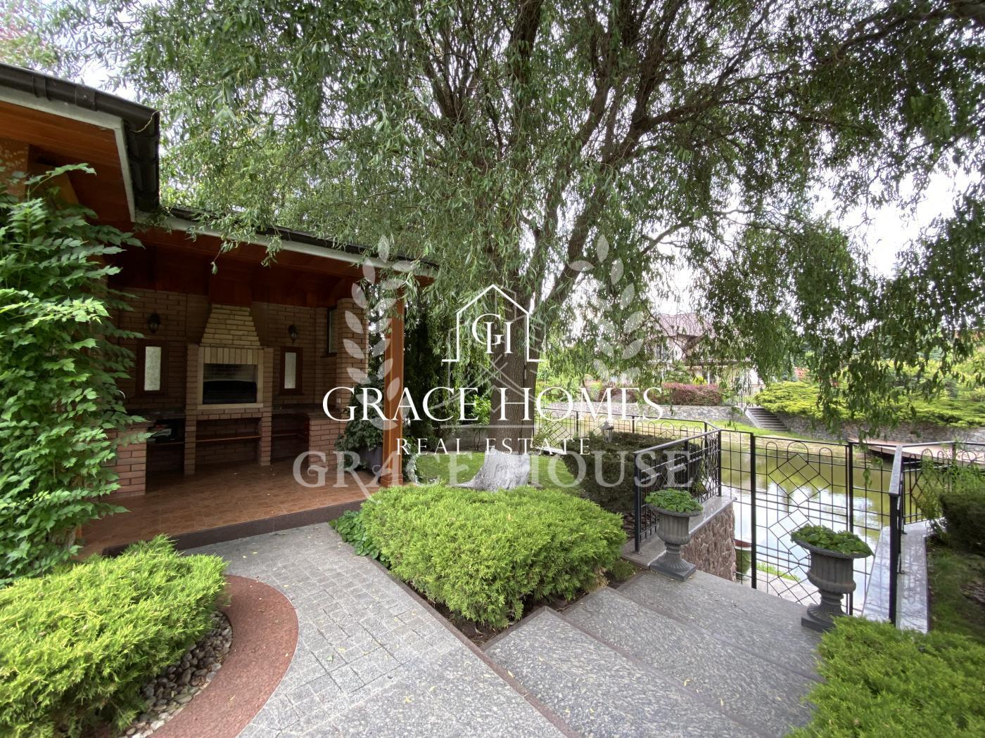 Охраняемый КГ Золотые Ворота. Дом 2009 года постройки 730кв.м, 3 этажный, гостиная с камином, кухня - столовая, 4 спальни, гардеробные, кабинет, 5 санузлов, большой бассейн 3,5х8м с противотоком, сауна, в цокольном этаже винный погреб, комната отдыха, тренажерный зал, общая система кондиционирования. Участок 20 соток с выходом на Козинку, ландшафтный дизайн,икрытая беседка с барбекю, домик охраны, прислуги, гараж. Всё коммуникации центральные, 20кВт, 3 фазы, генератор, круглосуточная охрана городка