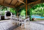 На территории есть: Ухоженное и развитое озеленение участка Дом для отдыха с баней Дом охраны + хозяйственное помещение Беседка у воды Небольшой открытый бассейн Дополнительно Недалеко находится гольф поле и Козинский заказник отличное место для велосипедных и пеших прогулок