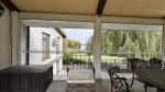 Гостевой дом 158 м2 примыкает к зоне отдыха и органично вписывается красивый в ландшафт участка. В гостевом доме есть английский камин в кальянной комнате с террасой, 2 спальни,2 санузла, комната охраны.