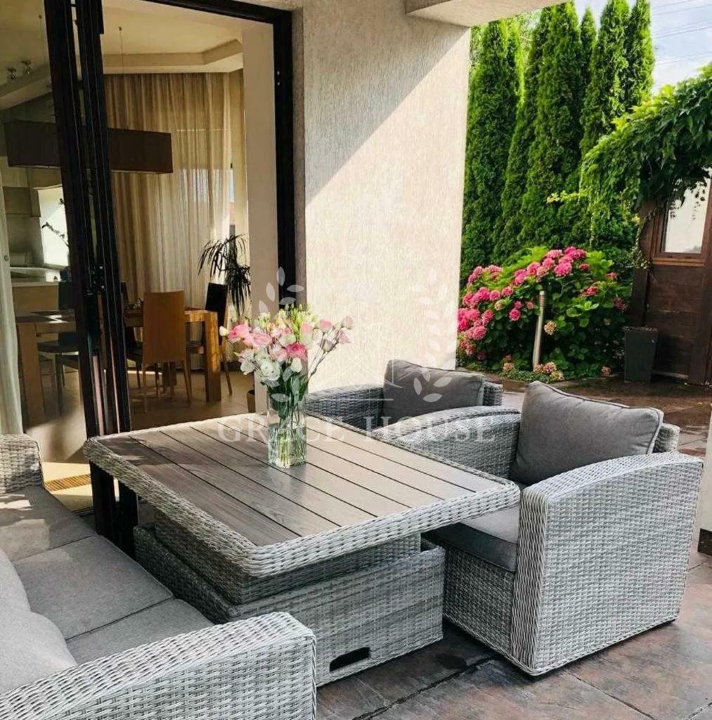 Ландшафтний дизайн додає привабливості приміщенню: на території розміщені газон, зона барбекю, дитячий батут, а також зона відпочинку з ротанговими меблями.