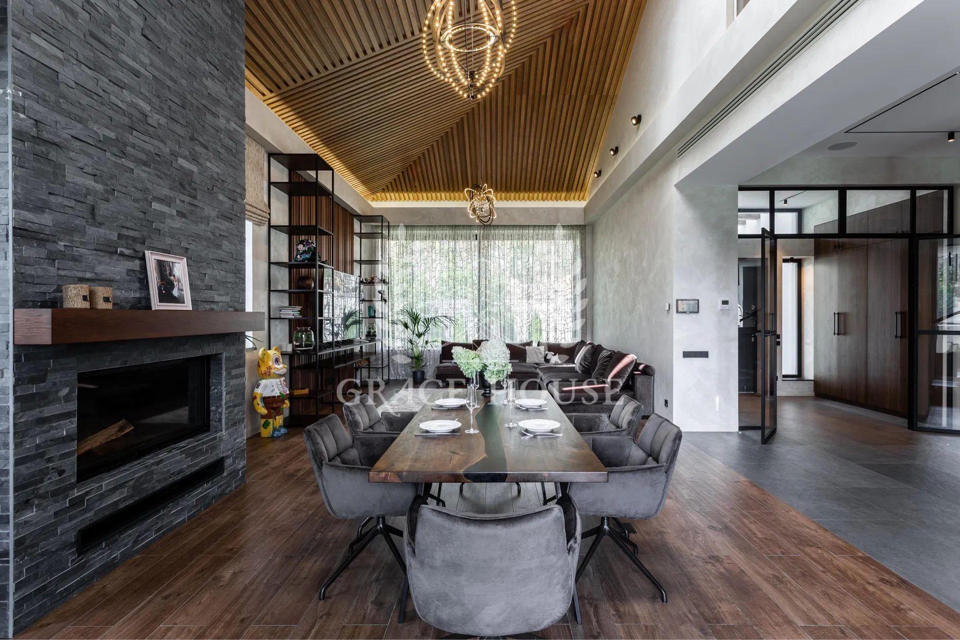 Будинок побудований за індивідуальним проектом у співпраці з провідними архітекторами, будівельниками та дизайнерами інтерєру. Велика кількість скляних площин створює відчуття абсолютного простору, не порушуючи приватність.