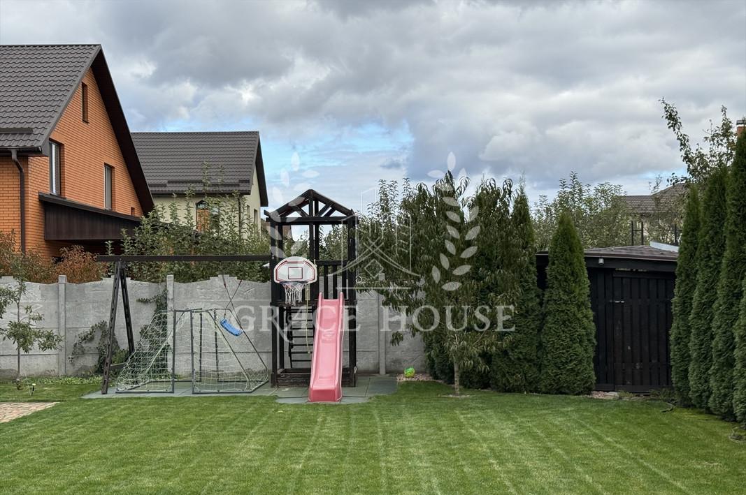 На участке выполнен ландшафтный дизайн, автополив на 7 зон, взорван до 100 туй по периметру. Оборудован теплый гараж на 45 м² и дополнительно автонавес. Лучшая локация, хорошая асфальтированная дорога, рядом вся инфраструктура. Расстояние до г. Киева – 2,5 км.