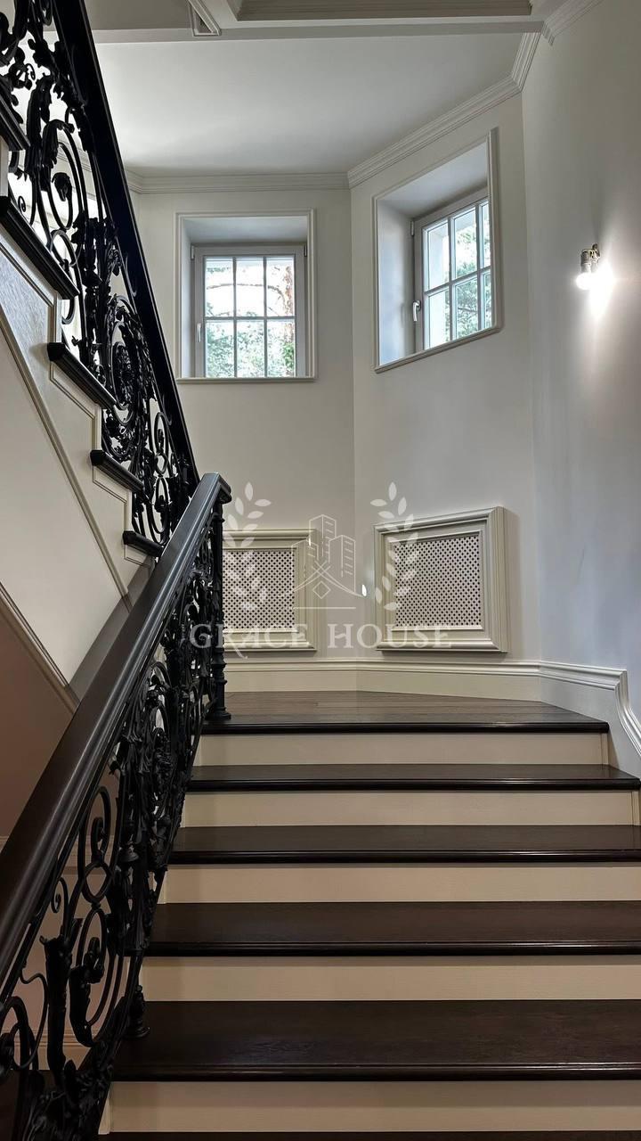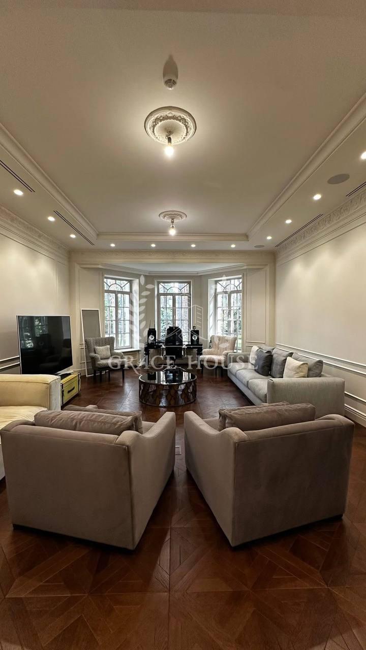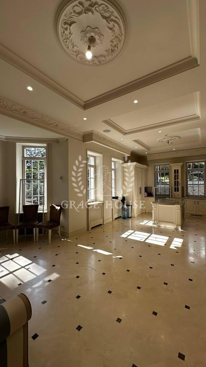 Описание: Гостиная, каминный зал, кухня-столовая, кабинет, 4 спальни с гардеробными и с/у, гардеробные, хоз.помещения, хамам, помещение для тренажеров, котельная, постирочная, гараж на 2 автомобиля
