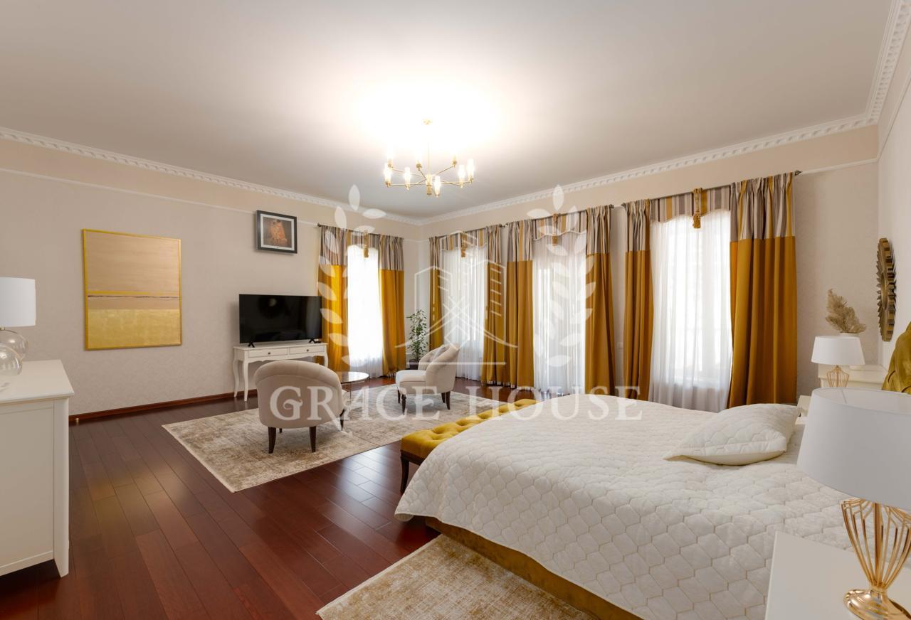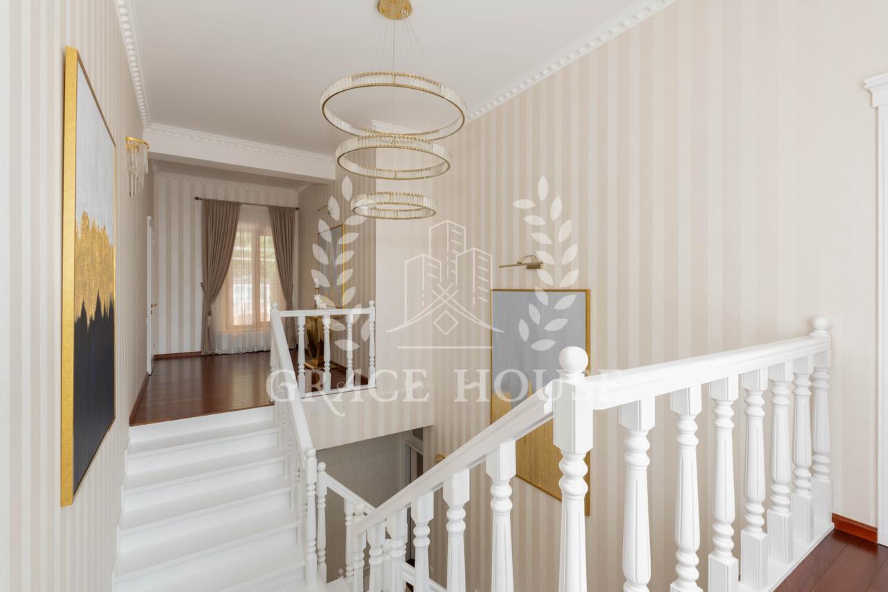 Второй этаж: Три спальни с выходом на балкон. Мастер спальня со своим санузлом и большой гардеробной. Две полноценные спальни, каждая со своим санузлом. Высота потолков 3,2м.