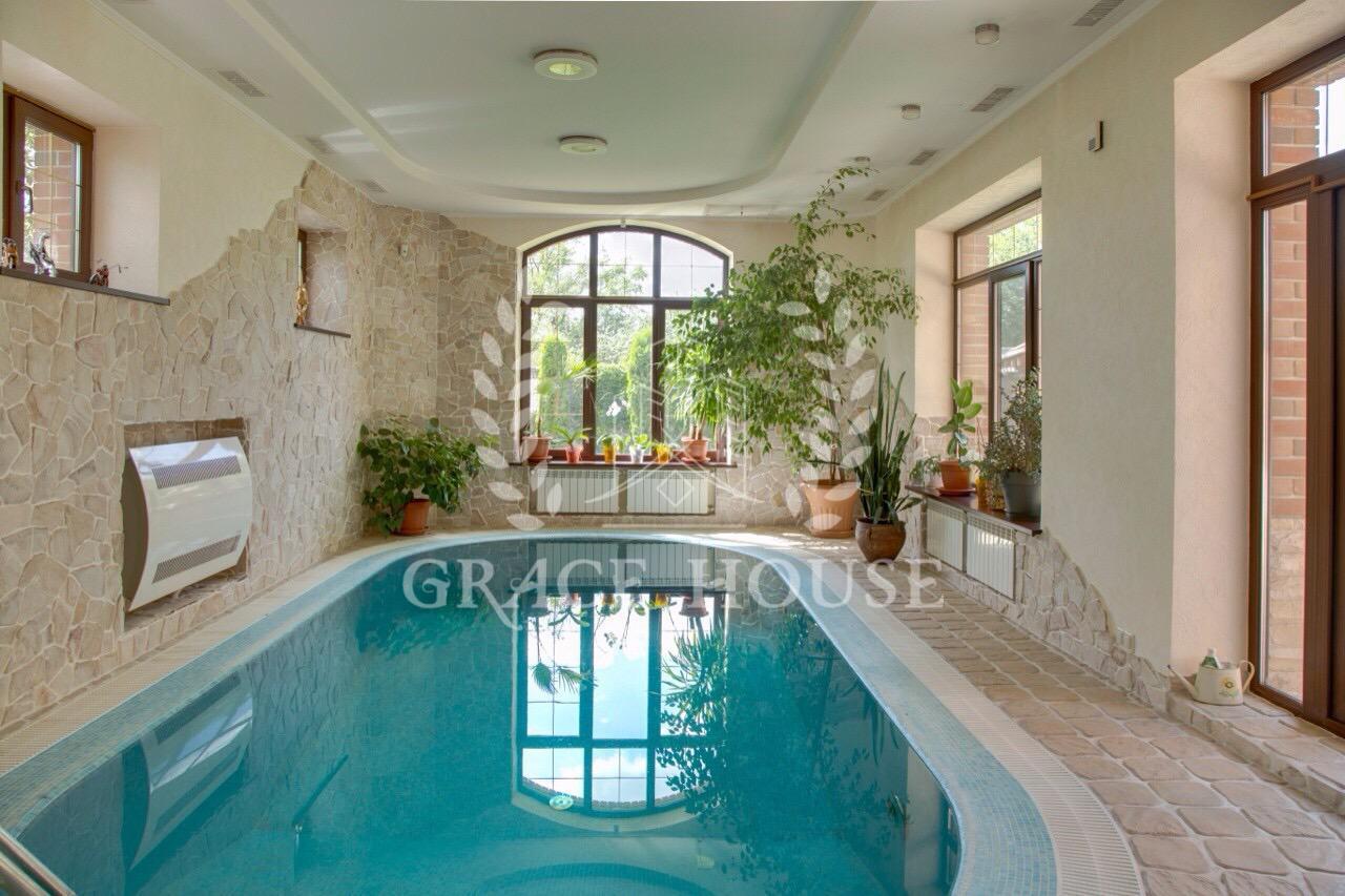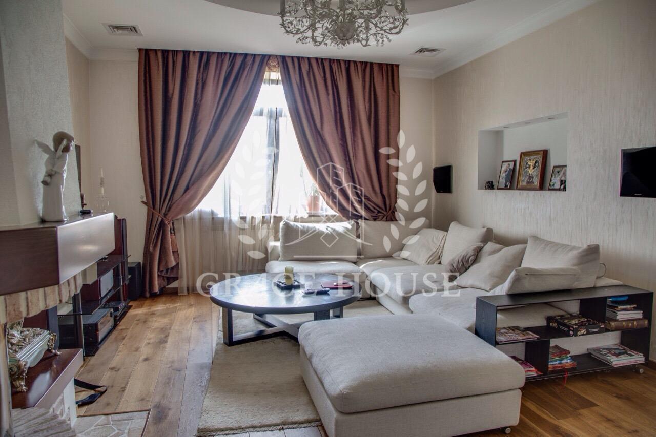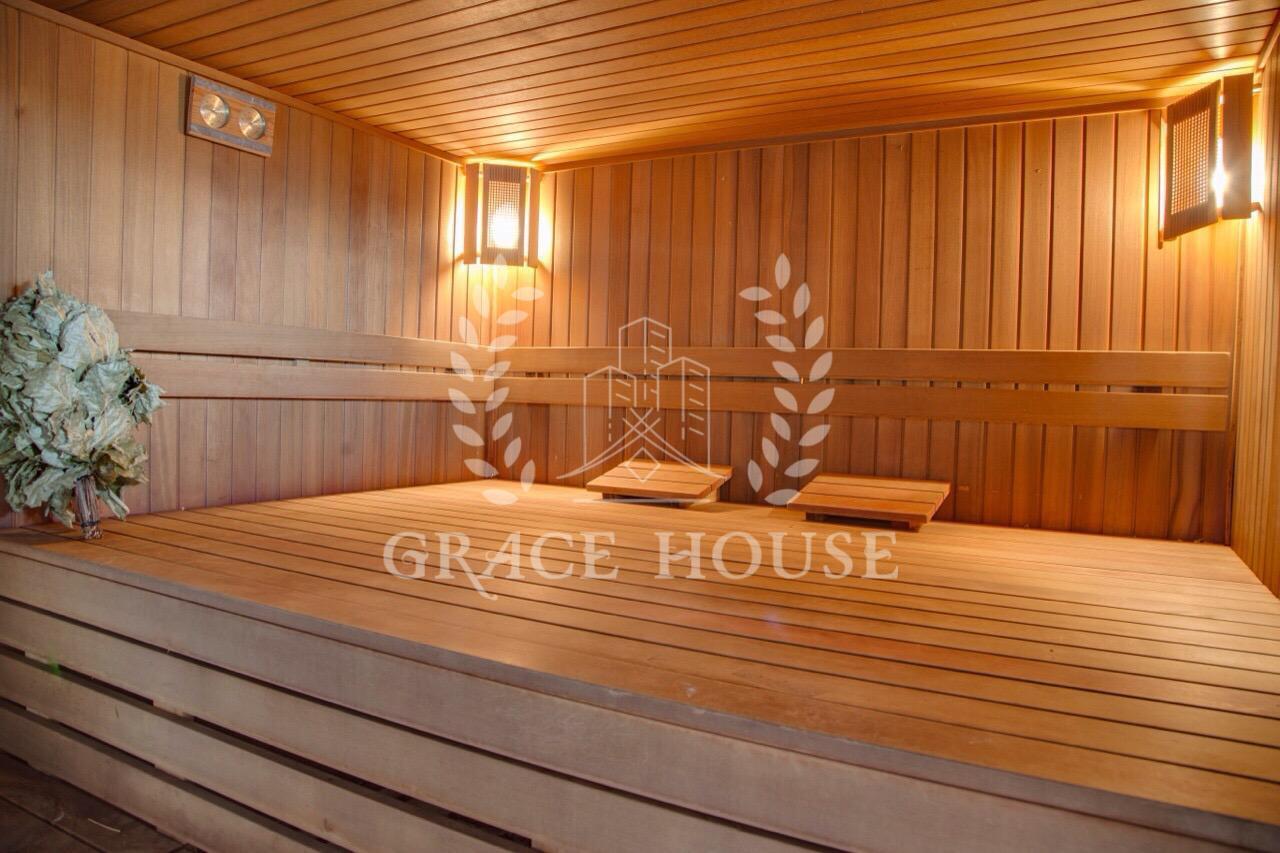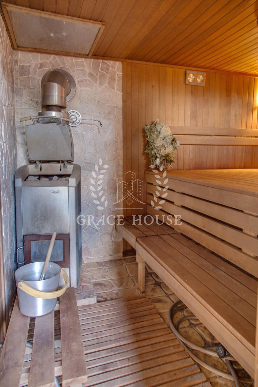 Общая площадь 425 кв. м. Планировочное решение: 1 этаж – открытое пространство гостиной с камином и кухни-столовой с выходом на просторную террасу, гостевой с/у, SPA зона с сауной и бассейном 7х3 метра с противотоком и переливом, гараж; 1,5 этаж – детская со вторым светом; 2 этаж – 3 спальни, главная спальня с гардеробной и ванной комнатами, с/у; подвал – тренажерный зал, S - 25 м² с полным комплектом тренажеров, котельная, прачечная, кладовые.