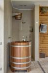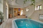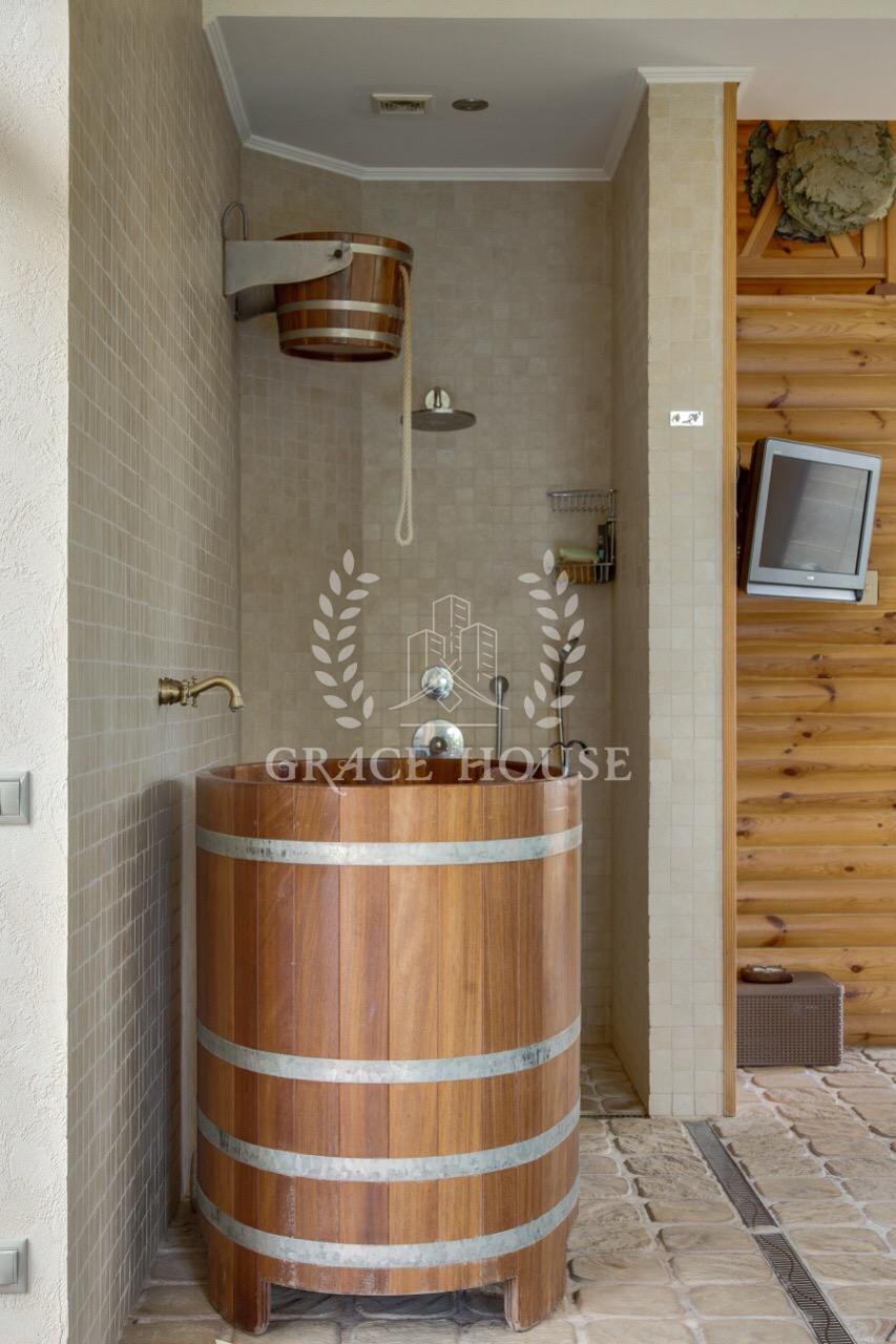 В с/у: 3 душевые кабины, угловая ванная Jacuzzi с мебелью «Villero&Boch». Техника: 3 плазменные панели, кухонная бытовая техника «SIEMENS» (духовой шкаф, пароварка, кофемаишина и пр.). Коммуникации: канализация - 2 выгребные ямы, общая система кондиционирования, 2 котла (газовый и сухое топливо), генератор мощностью 37 кВт , мультимедийная система мультирум, 2 спутниковые тарелки, системы теплых полов, системы очистки воды.