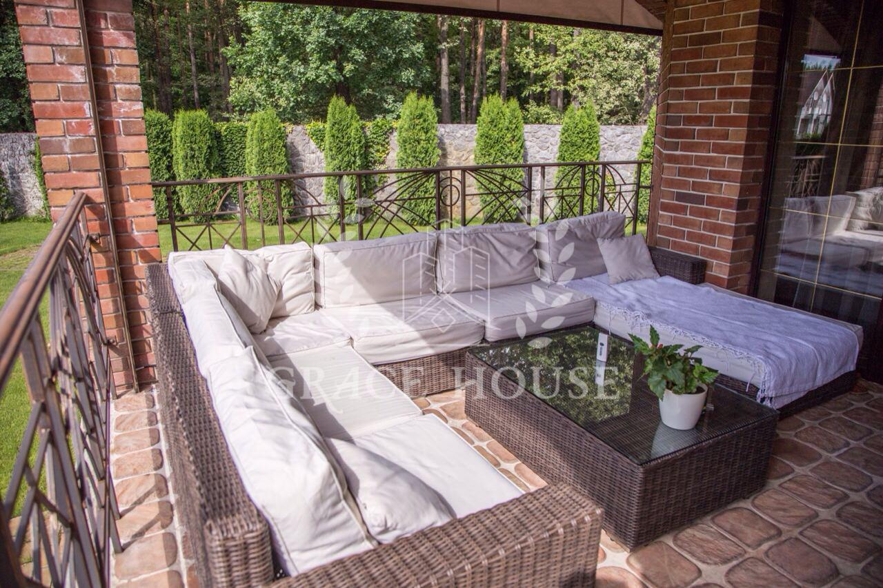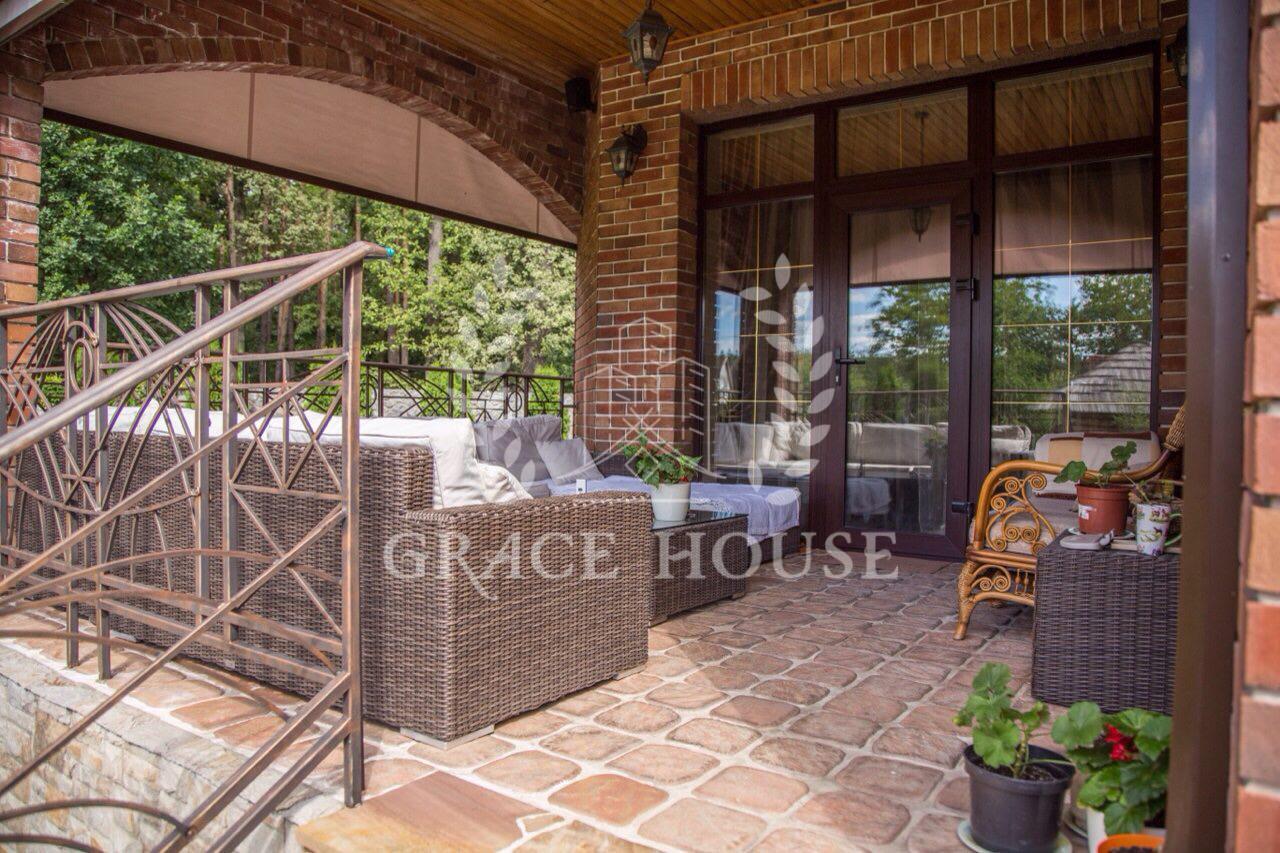 Дом со всеми автономными коммуникациями, мебелью и техникой, 8 км от Киева по Новообуховской трассе село Кременище. Расположен на участке 17 соток, огражден высоким каменным забором. Граничит с соседями с одной стороны, с остальных сторон лес.