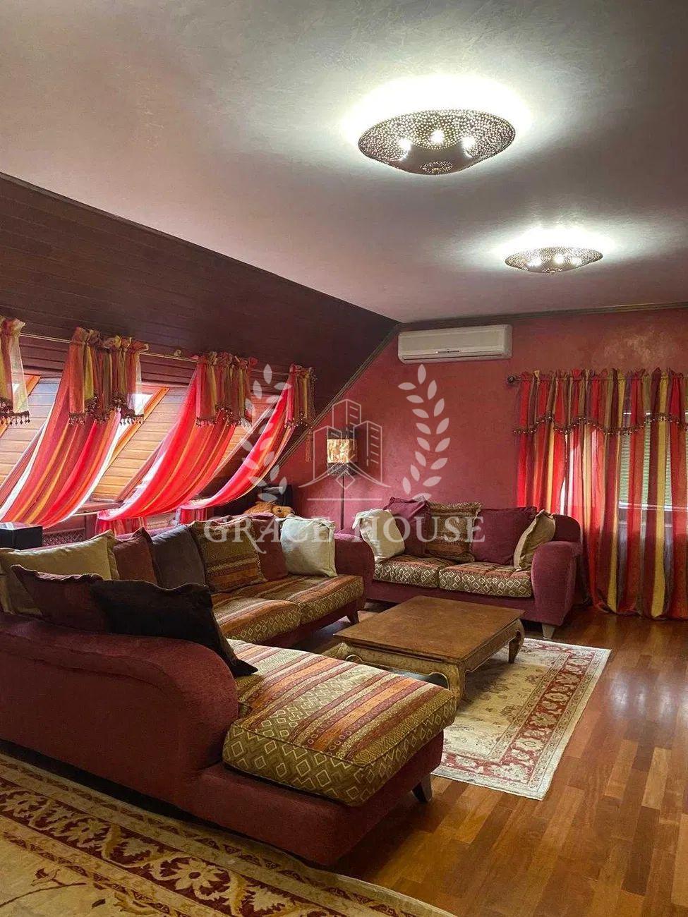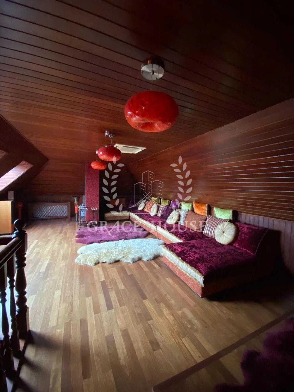 Шикарный двухуровневый мансардный этаж с детской, гардеробной, кабинетом, с/у, лаундж-зоной с аудио-подготовкой и комфортными диванами.