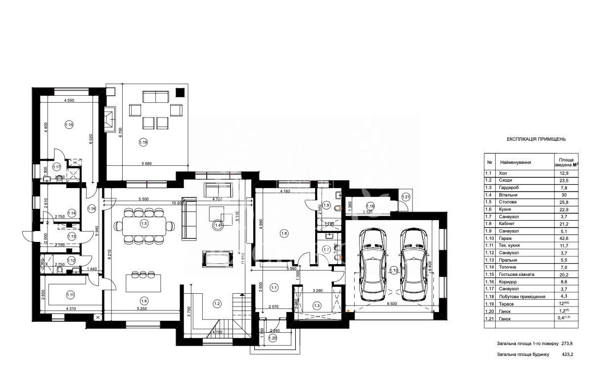 Общая площадь: 425 м, два этажа, участок 13 соток. В доме 5 полноценных спален, 7 санузлов, панорамное остекление, гараж на два авто. Ладшафтный дизайн, прямой выход к реке Козинка