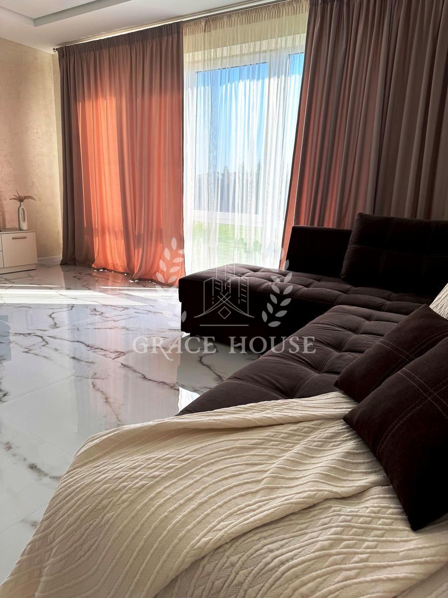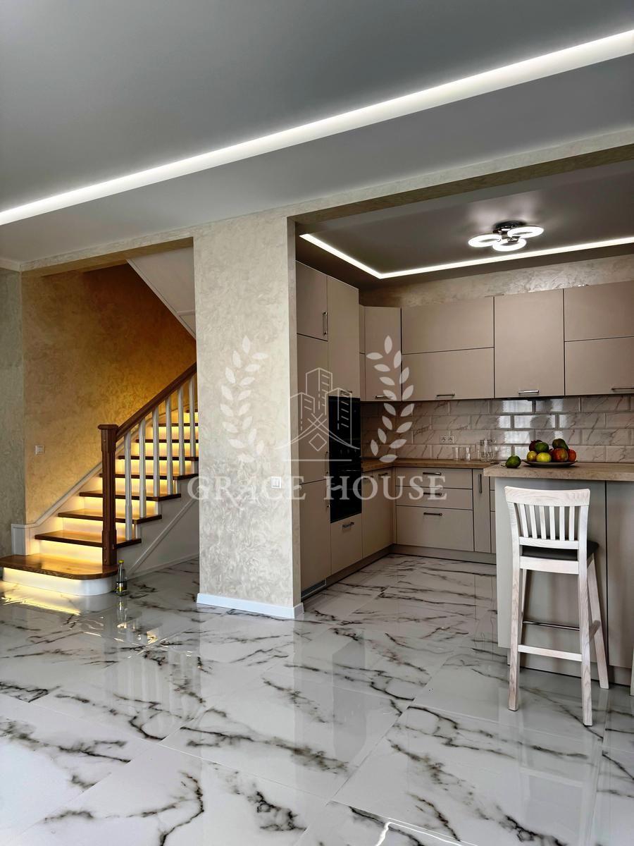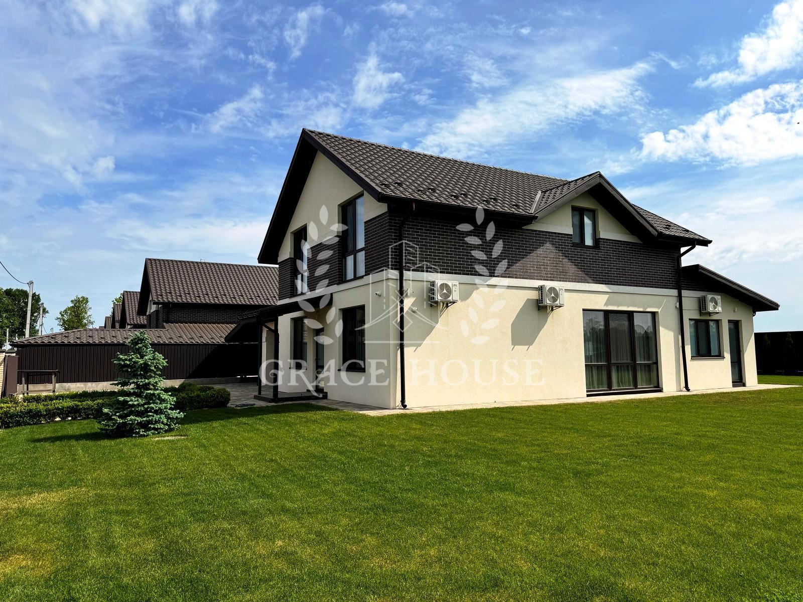 Новий двоповерховий будинок з ремонтом та меблями площею 255 м.кв. на земельній ділянці 14 соток в затишному місці с. Крюківщина в закритому котеджному містечку.