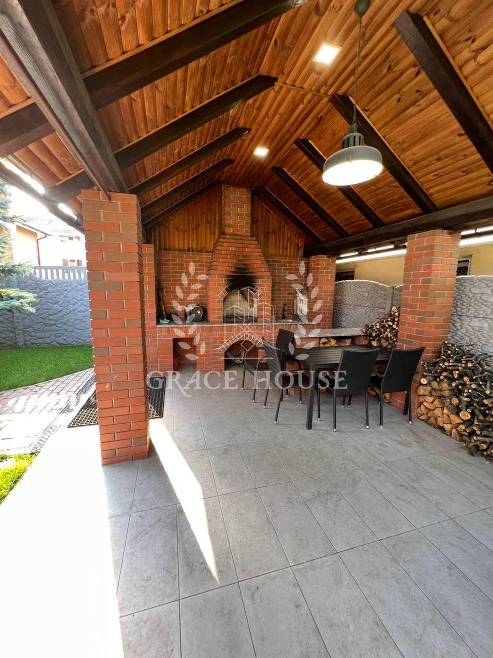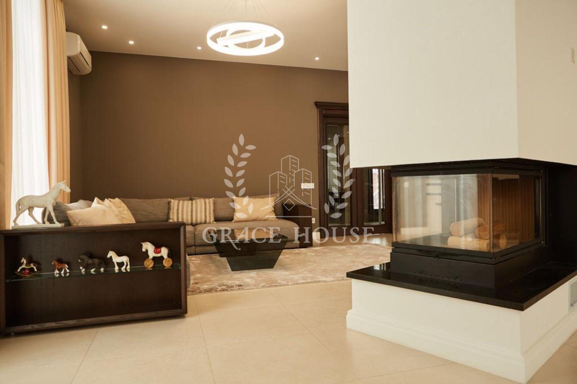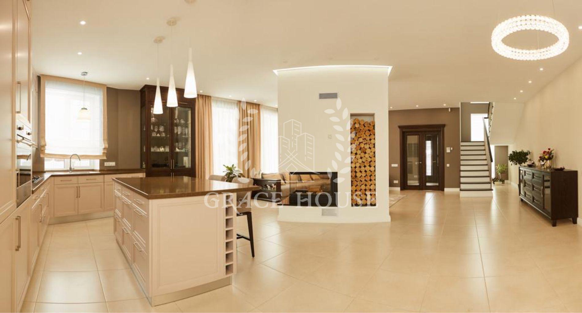 Предлагаем современный дом 357 м2 на Нивках, Подольский р-он. Закрытая, охраняемая территория. Дом 357 м2, построенный по высоким стандартам энергосбережения. Итальянские изразцы, ореховый паркет, германский сан. техника Grohe, HansGrohe, Villeroy & Boch. 4 спальни, каждая со своим сан. узлом. Мастер спальня имеет отдельный доступ к гардеробной и ванной комнате с балконом и отдельным входом в детскую. Кухня-гостиная 73м2. Действующий трехсторонний камин. Отдельный спортивный зал, беговая дорожка, сауна. Отдельный кабинет, две гардеробные, гостевой санузел, отдельная стиральная комната. Терраса, барбекю зона, 6 соток земли. Полный консьерж сервис внешней территории. Гараж + паркинг на 2 авто