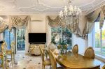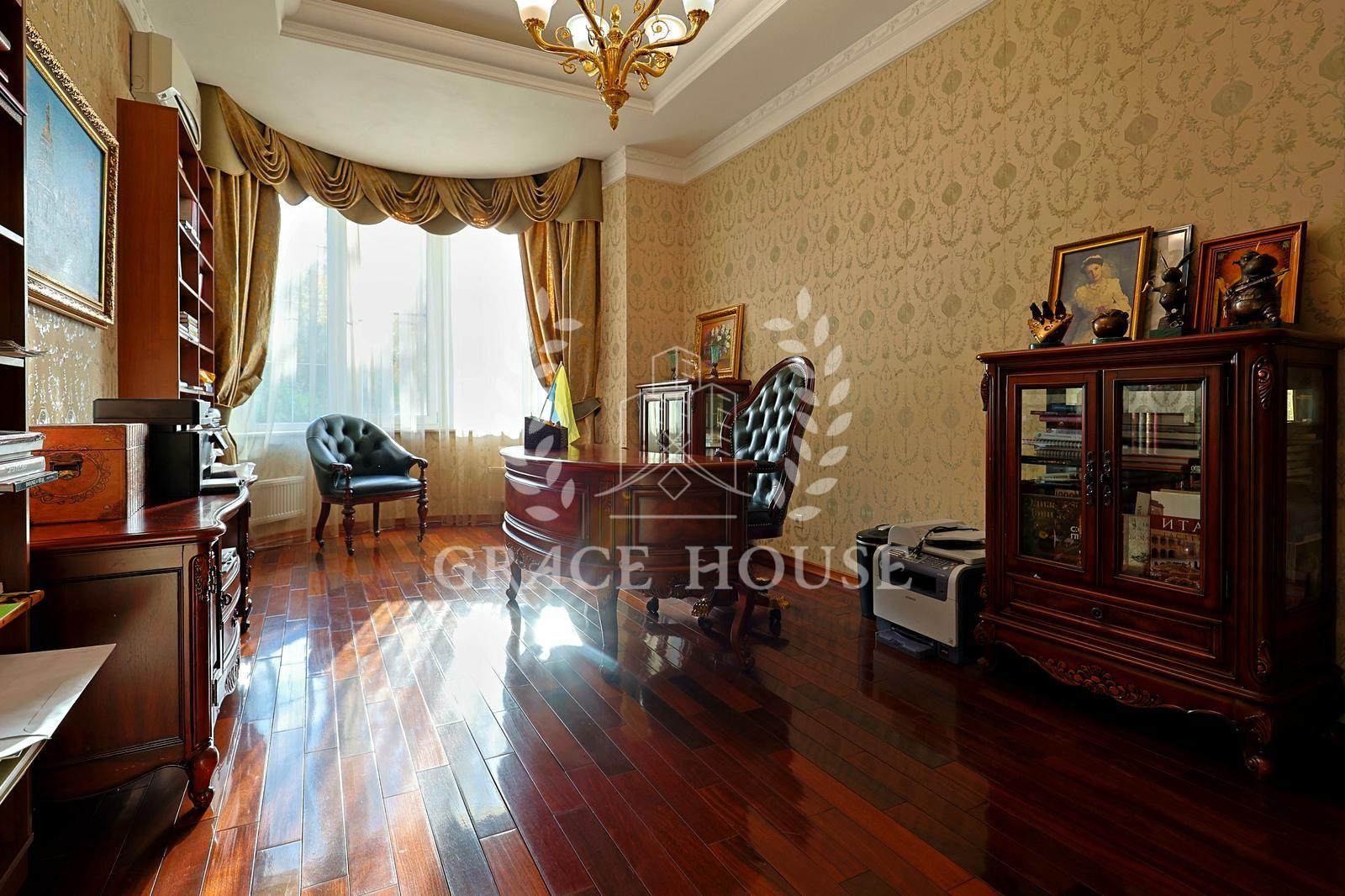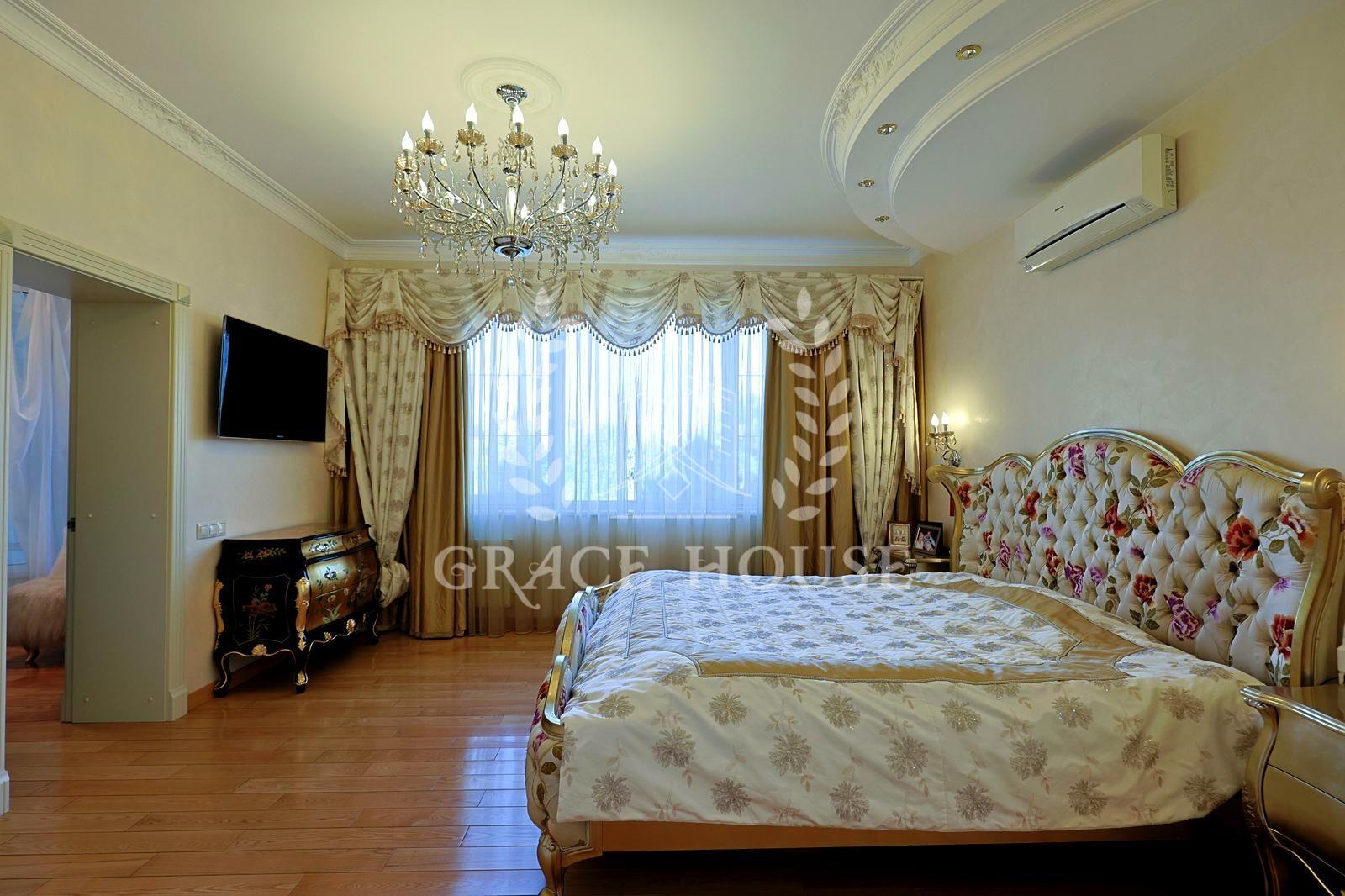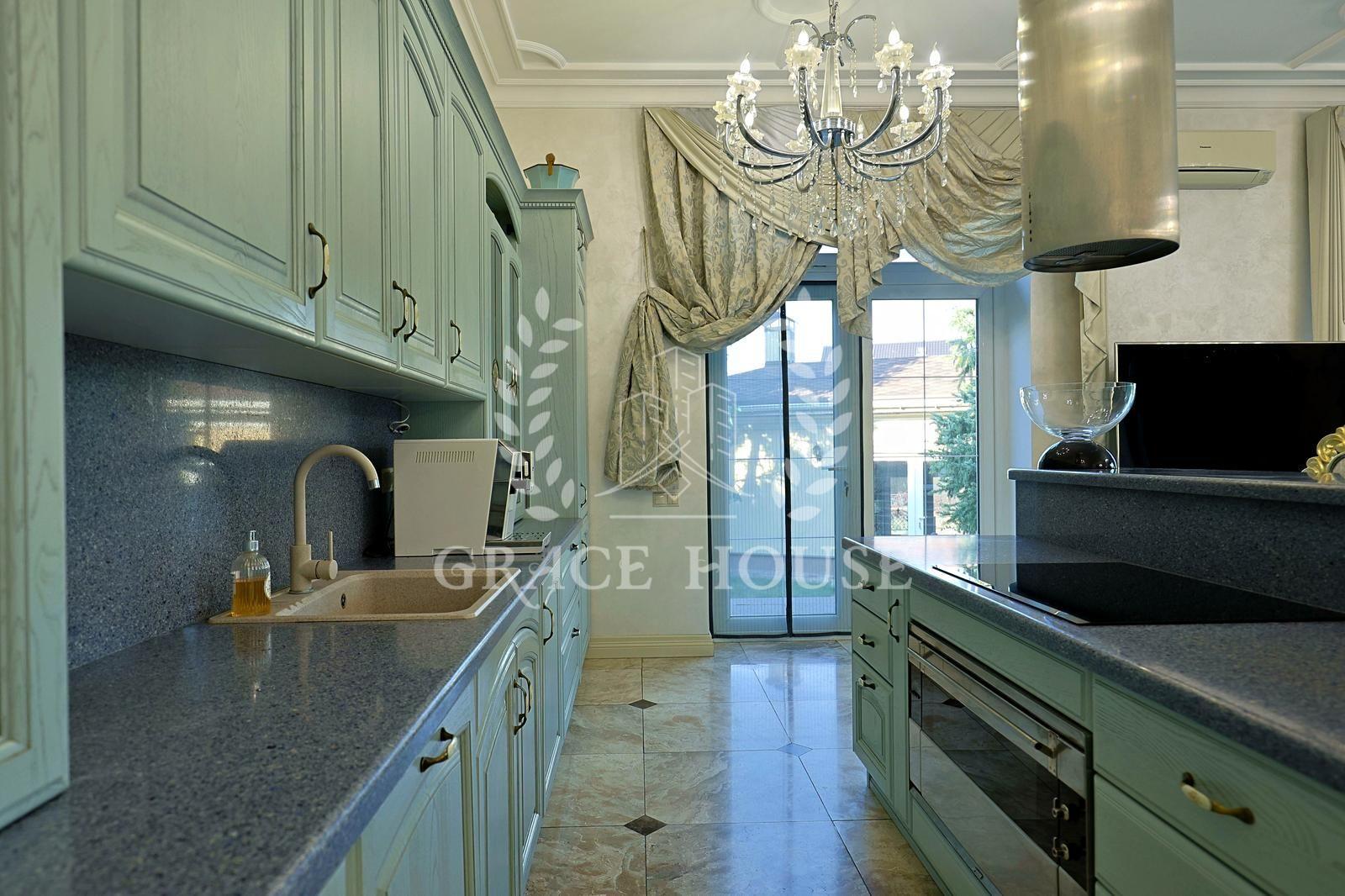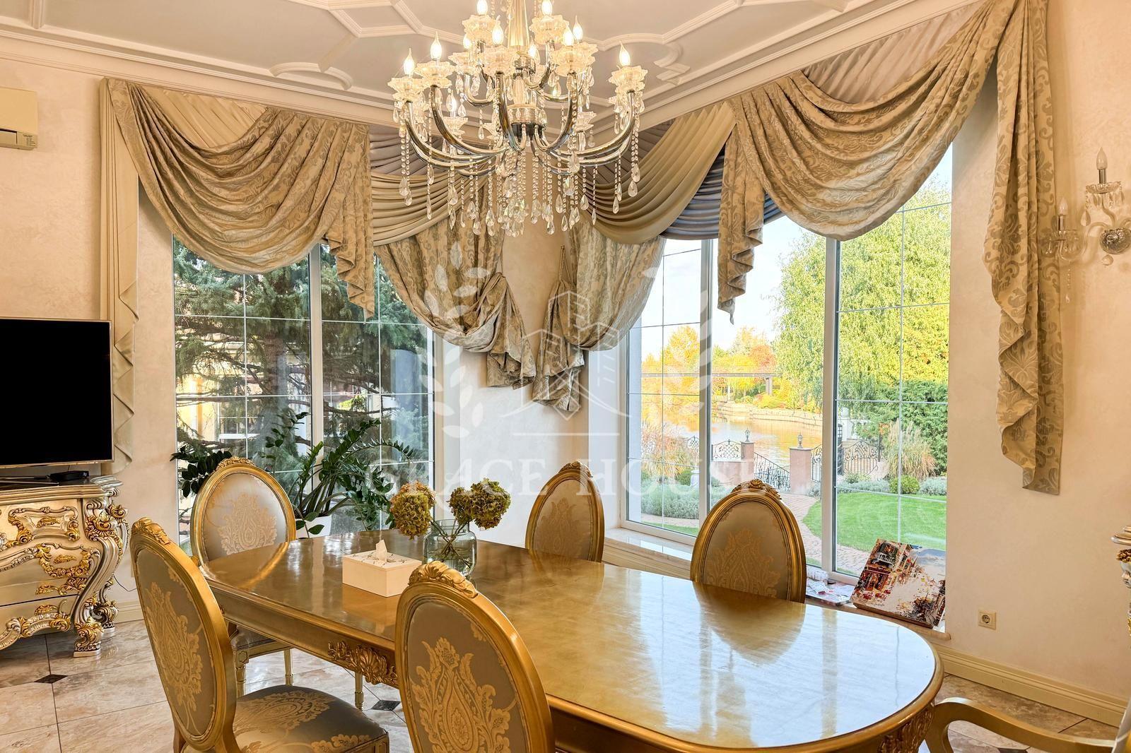 Цей розкішний котедж створений для тих, хто цінує комфорт, стиль і енергію справжнього затишку. У дизайні поєднані натуральні матеріали, зокрема італійський мармур, меблі та сантехніка від світових брендів, а змішувачі прикрашені кристалами Swarovski. Біля входу — дві мармурові статуї левів, що охороняють стабільність і гармонію дому. Інтер’єр прикрашають коштовні люстри з кришталю, що переливаються у світлі сонця, розкішні мармурові сходи та камін додає тепла та затишку зимовими вечорами. Цей дім буквально заряджає позитивною енергетикою, наповнює любов’ю — звідси не хочеться йти.
