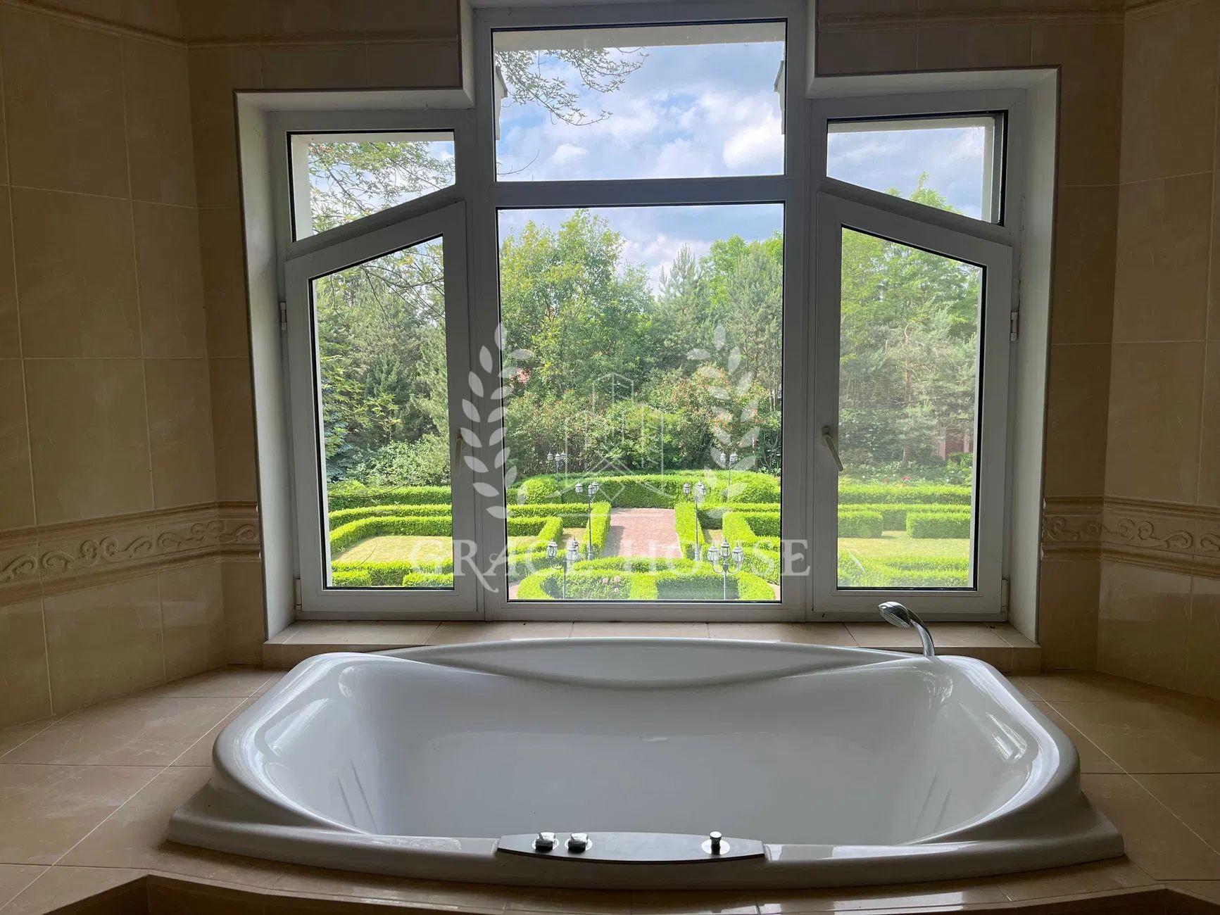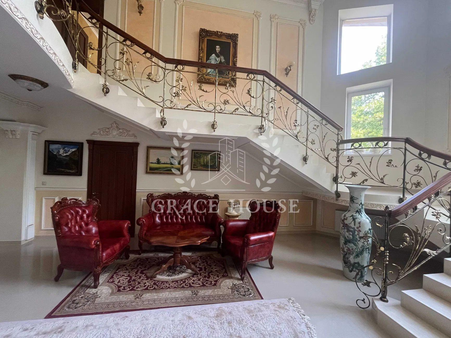 Головний будинок 3 поверхи -589м2. Житлова 128 кв.м. Всі 11 кімнат мебльовані, 4 гардеробні кімнати, 6 санвузлів . Кухня з вбудованою побутовою технікою .
