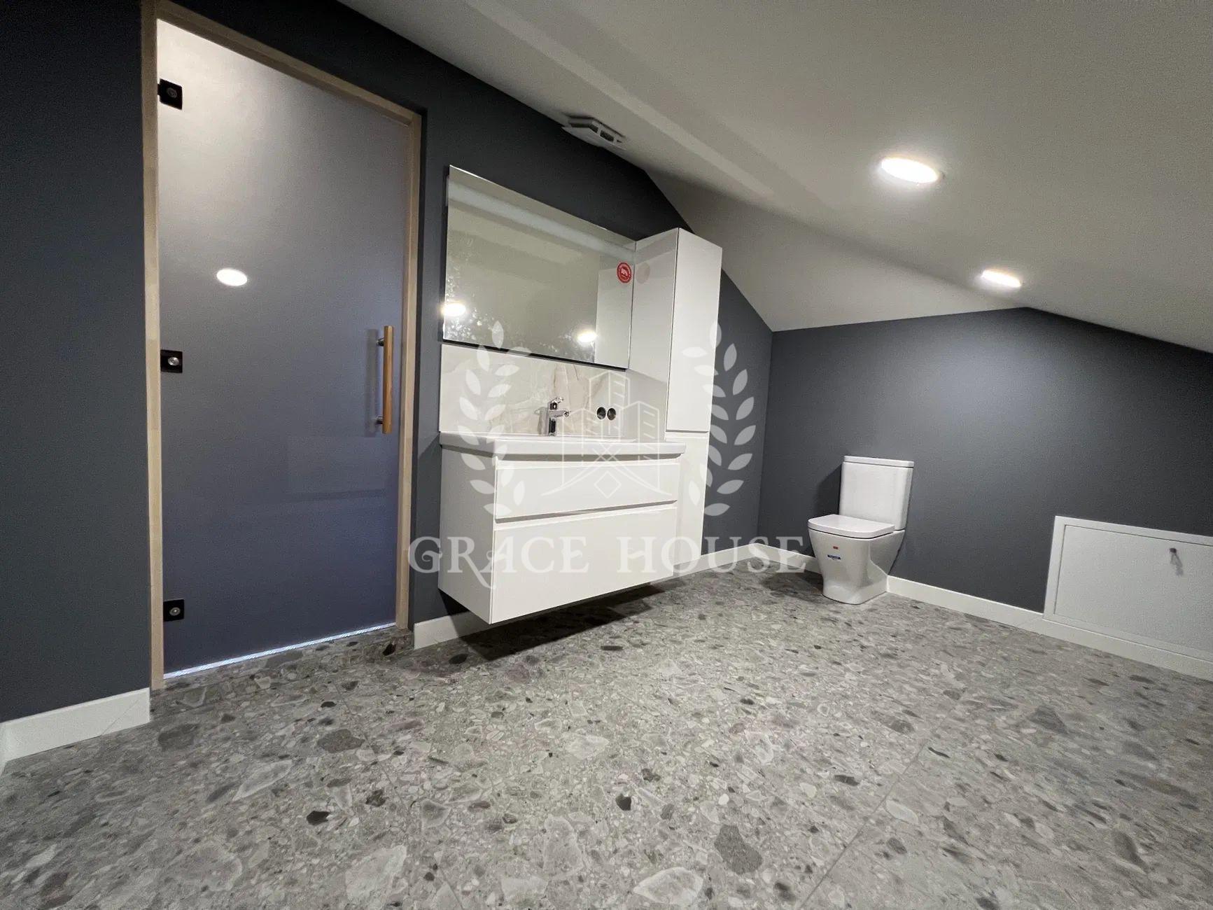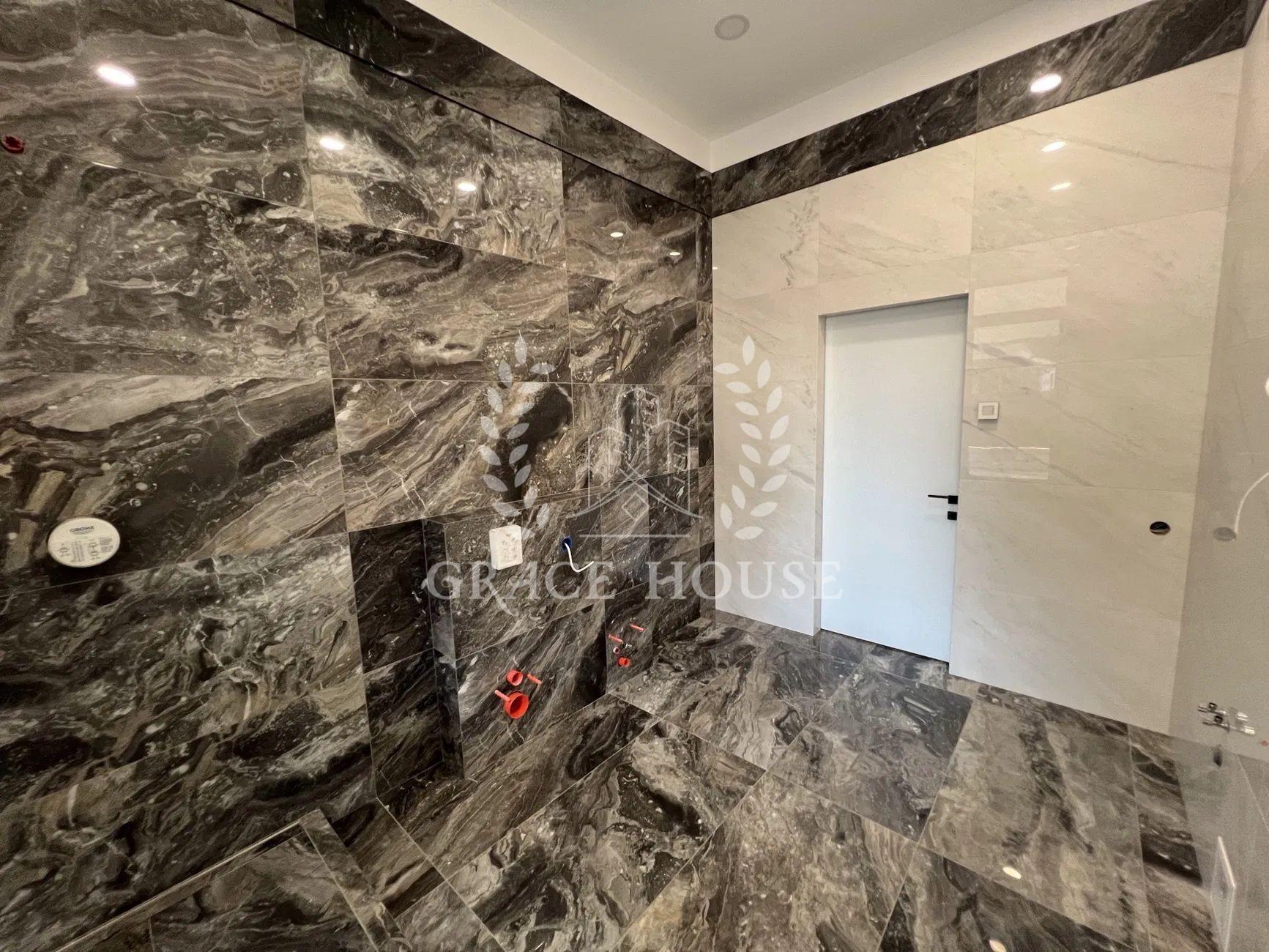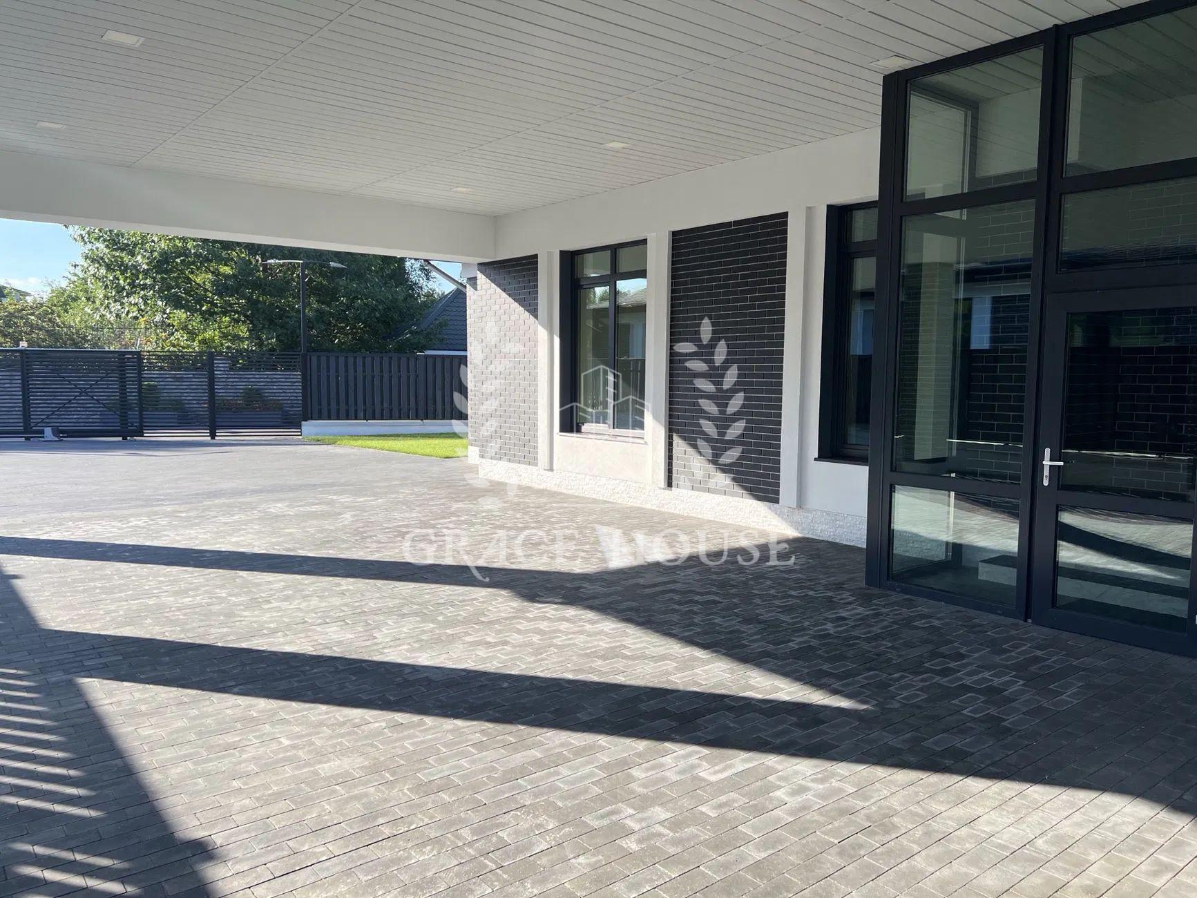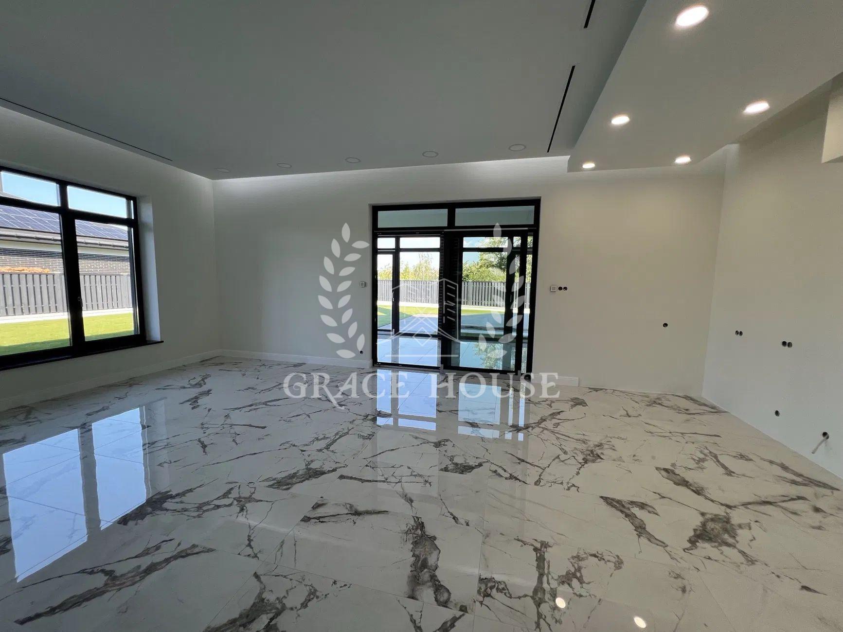 В доме электричество заведено, воздушное кондиционирование и отопление, тепловой насос, водяной пол по всей площади дома, электрокотёл 30 кВт. Вода из скважины, септик с дренажным полем, все коммуникации, возможность газификации. Продажа без мебели. Материал стен - керамоблок.