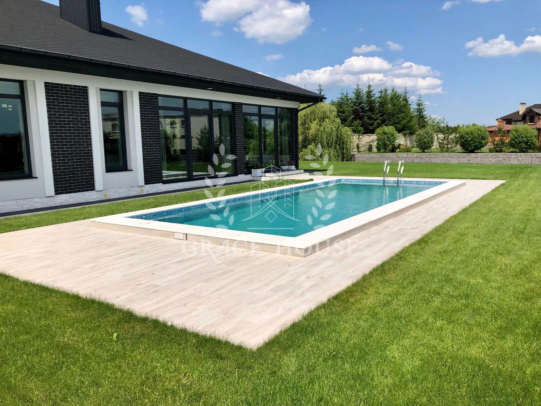 Одноэтажный дом 400 м2 в Козине с выходом на р.Козинка с бассейном.
