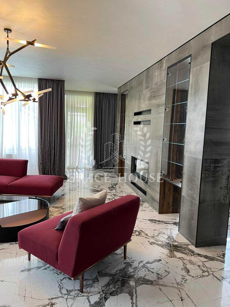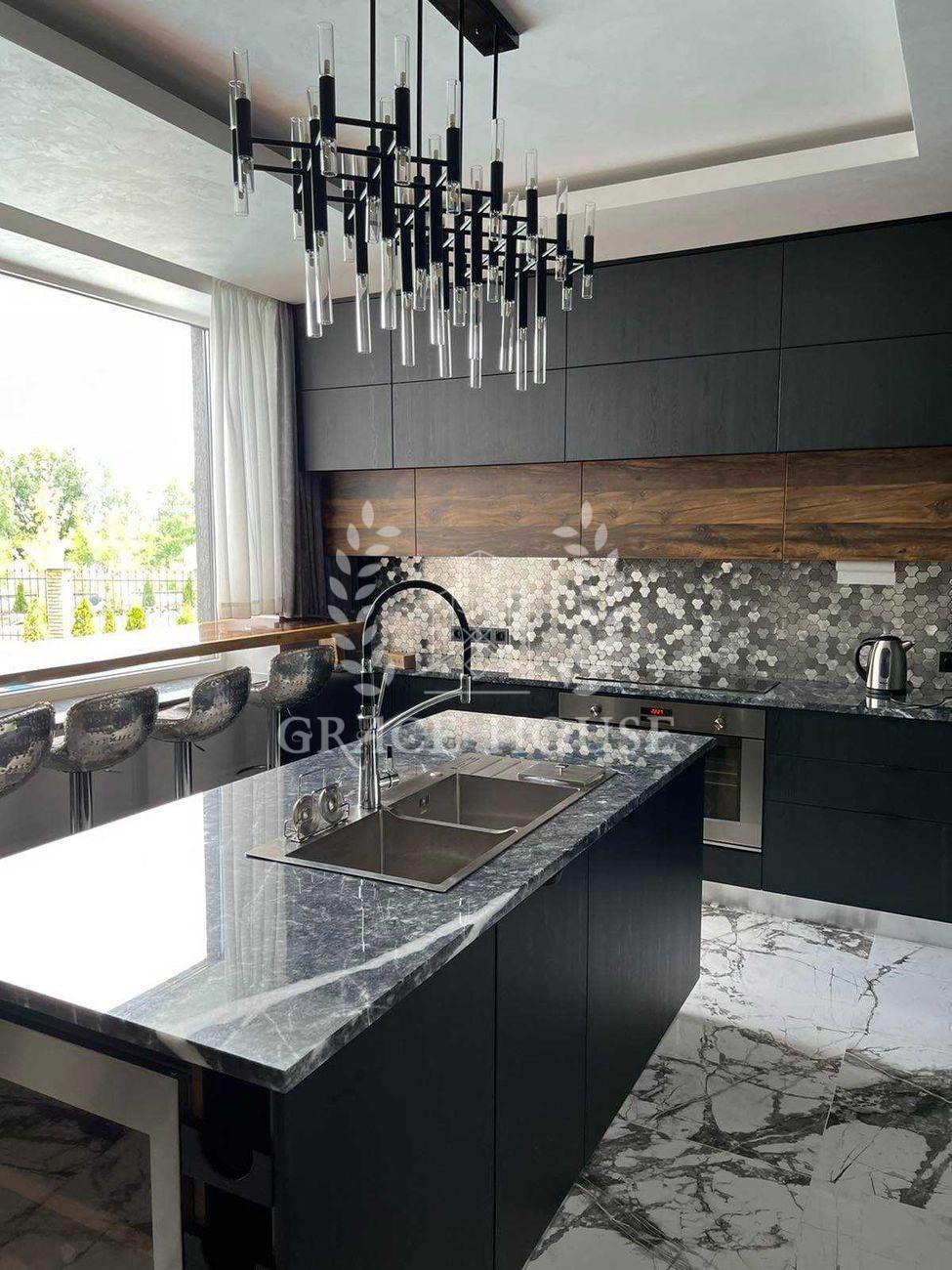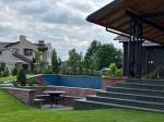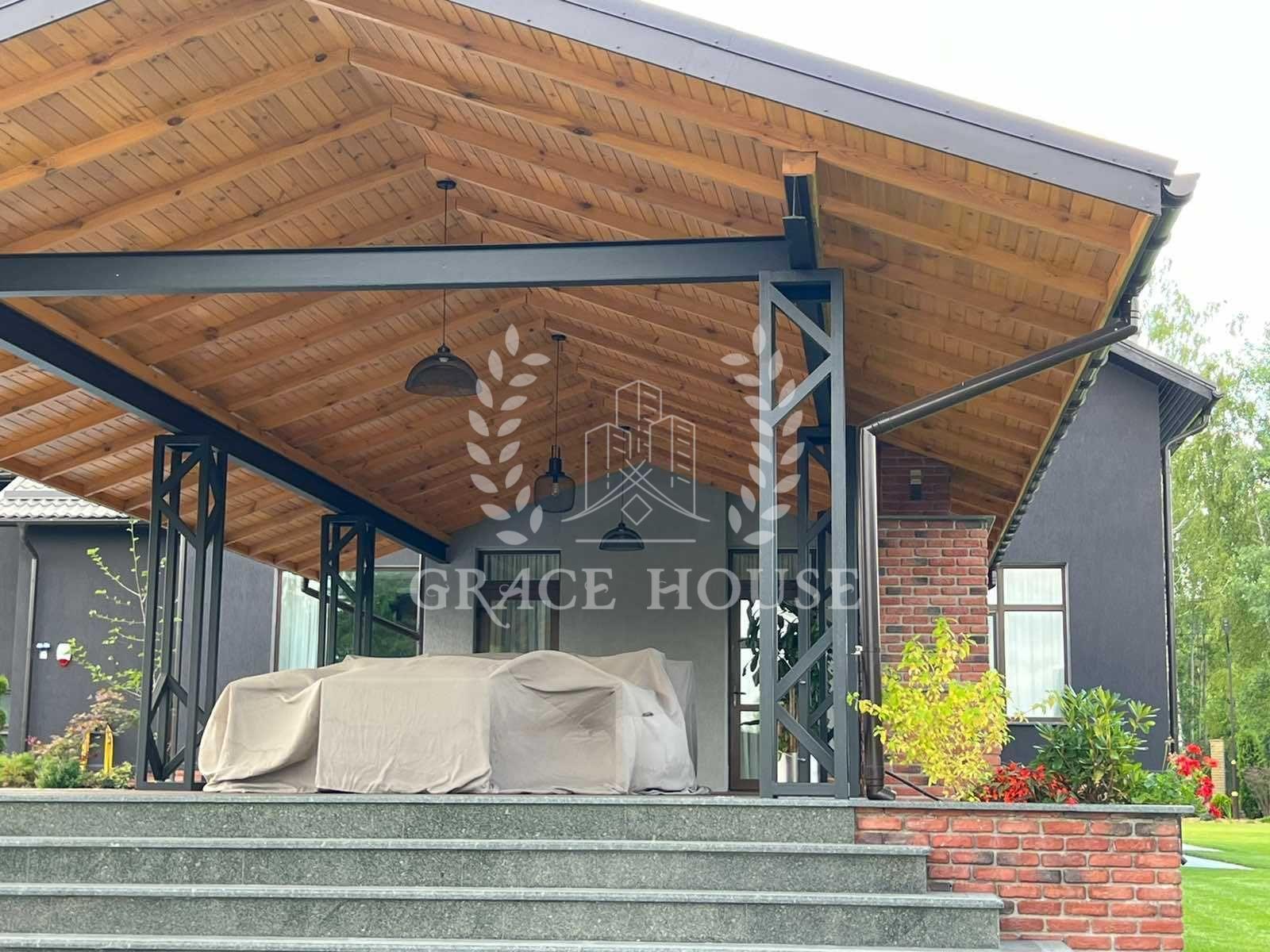 Современный новый дом в охраняемом КГ в Плютах. Постройка 2021 года. Общая площадь дома 430кв.м, 28 соток с выходом на Козинку, большая гостиная, 4 спальни, кабинет, большой бассейн, беседка , отдельно дом охраны, прислуги. В строительстве дома использовались натуральные, экологически чистые материалы. Теплонасосы. Есть дизельный генератор. Фундамент сваи, стены кирпич, крыша металлочерепица. Скважина 64м, 25 кВт. Видеонаблюдение по периметру.