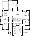 На втором этаже четыре спальни. Хозяйская спальня с гардеробной и просторным санузлом. Вторая спальня с отдельным санузлом. Детский блок из двух спален, санузла и гардеробной.