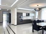 Просторная зона первого этажа состоит из: кухни, столовой, телевизионной зоны и каминной (биокамин). Коридор со шкафами купе.