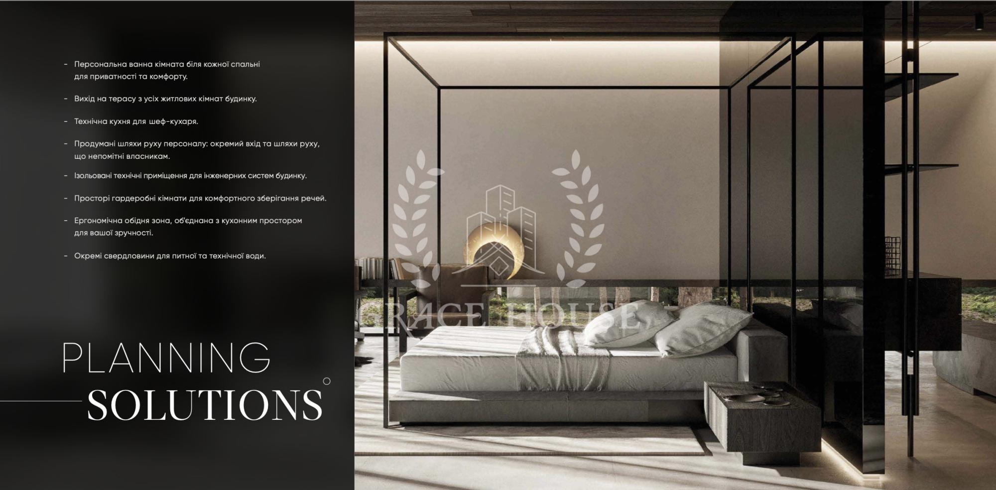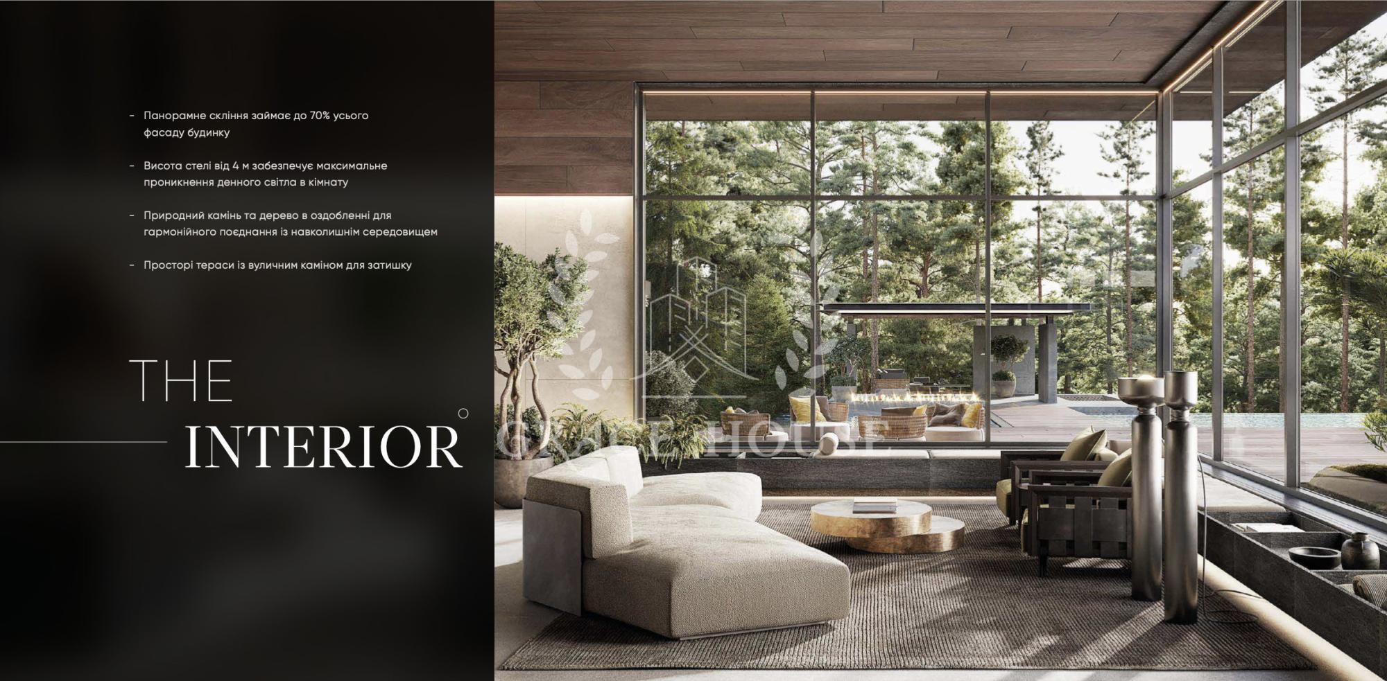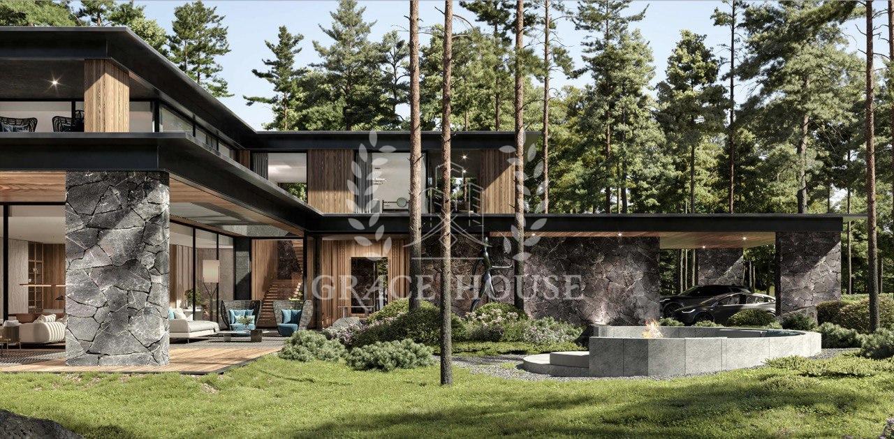 - Концепція без парканів. Ландшафтні рішення, які втілені в оточення соснового лісу. Низька щільність