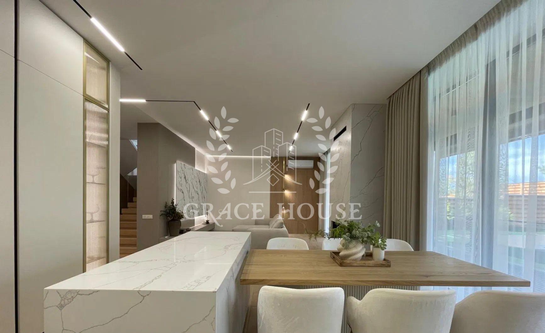 - 2 дитячі спальні, мастер-спальня з власним санвузлом та гардеробом, загальний санвузол, гардеробна кімната;