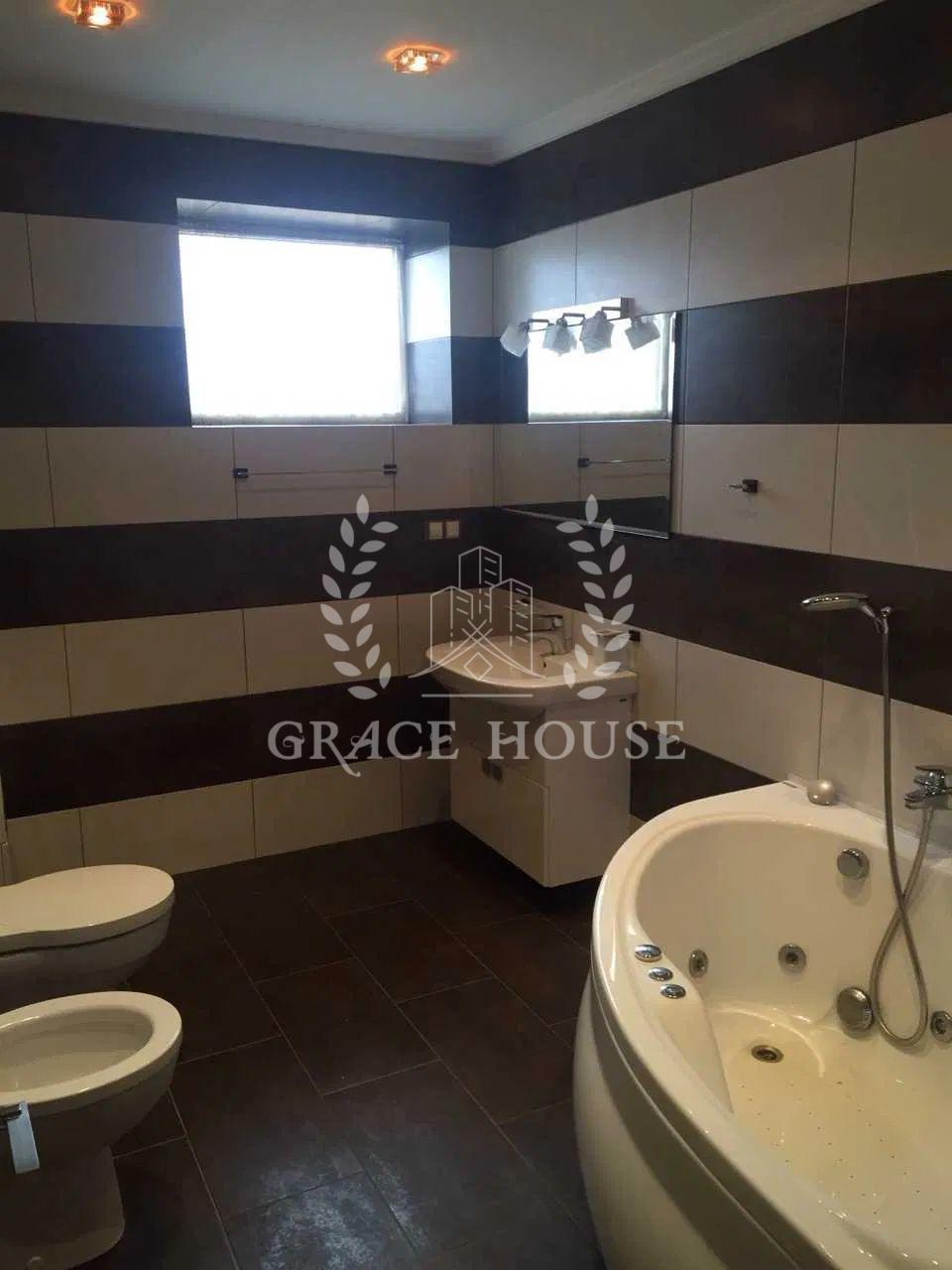 Повністю мебльований будинок у 3 поверхи з цоколем, обладнаним бомбосховищем . 6 кімнат, простора вітальня, 4 санвузли та сауна. Підключені газ, світло, вода, інтернет, сигналізація, кондиціювання, генератор.