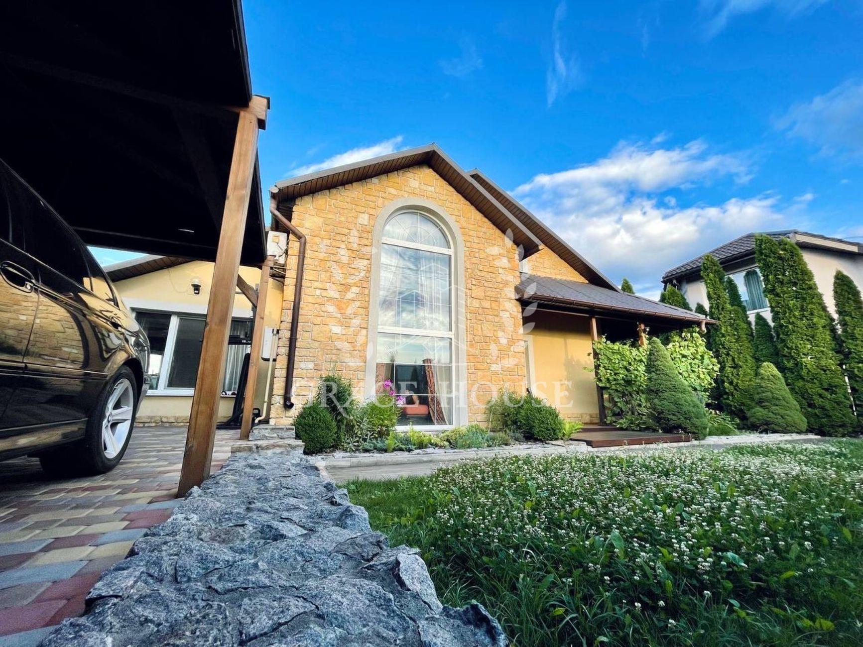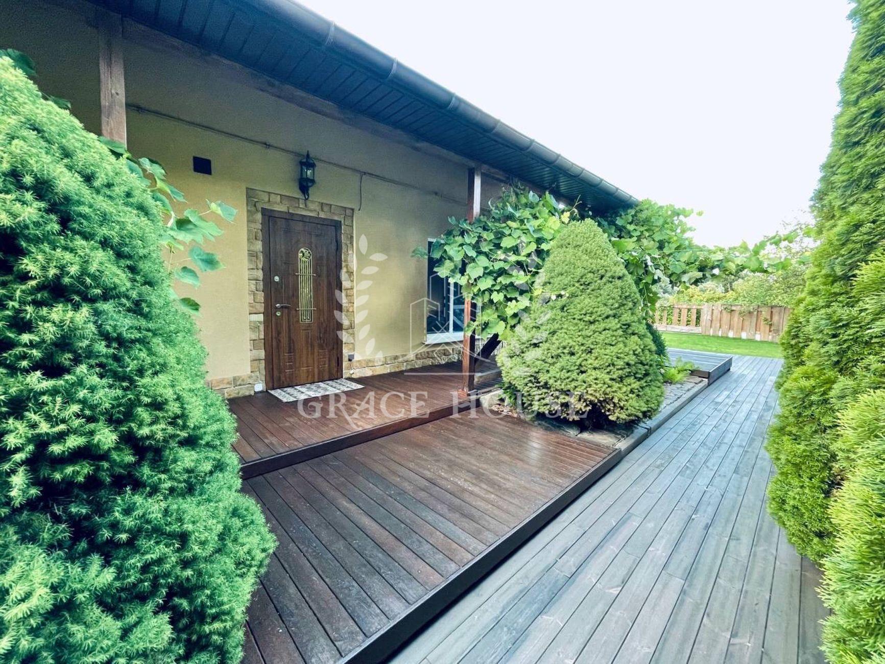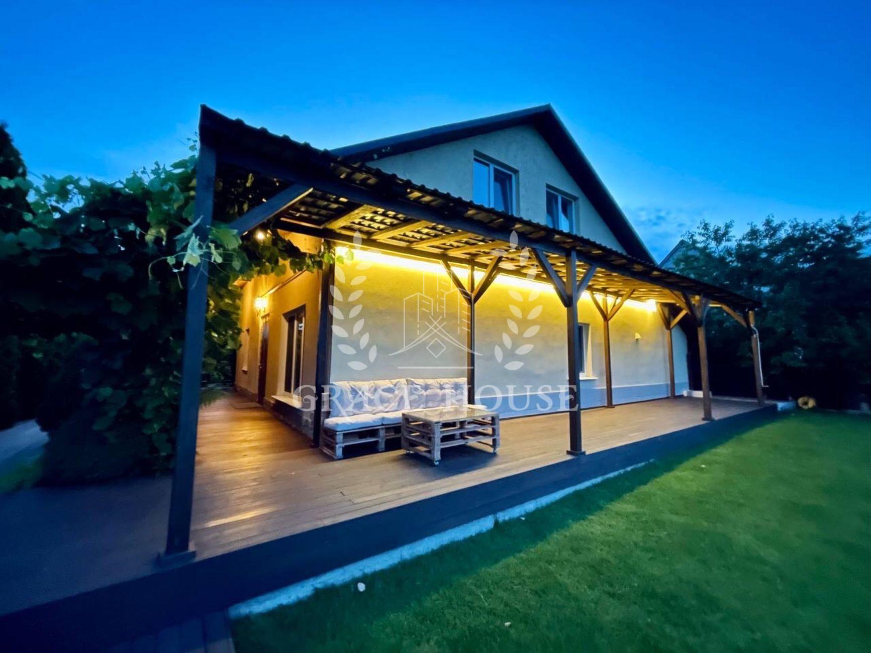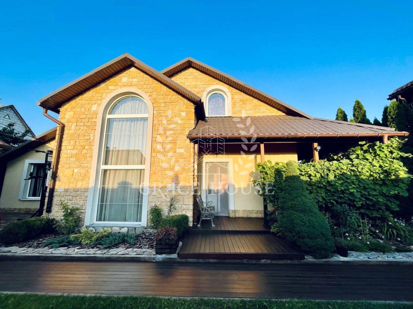 Будинок повністю автономний. Ділянка 6 соток. На території фруктові дерева, виноград. Знаходиться у мальовничому місці, поряд озеро. Є гостьовий блок (в ньому спальня, кухня, з/в з душем). Паркування з навісом на 2 авто, місце для гостьових машин поряд із будинком.