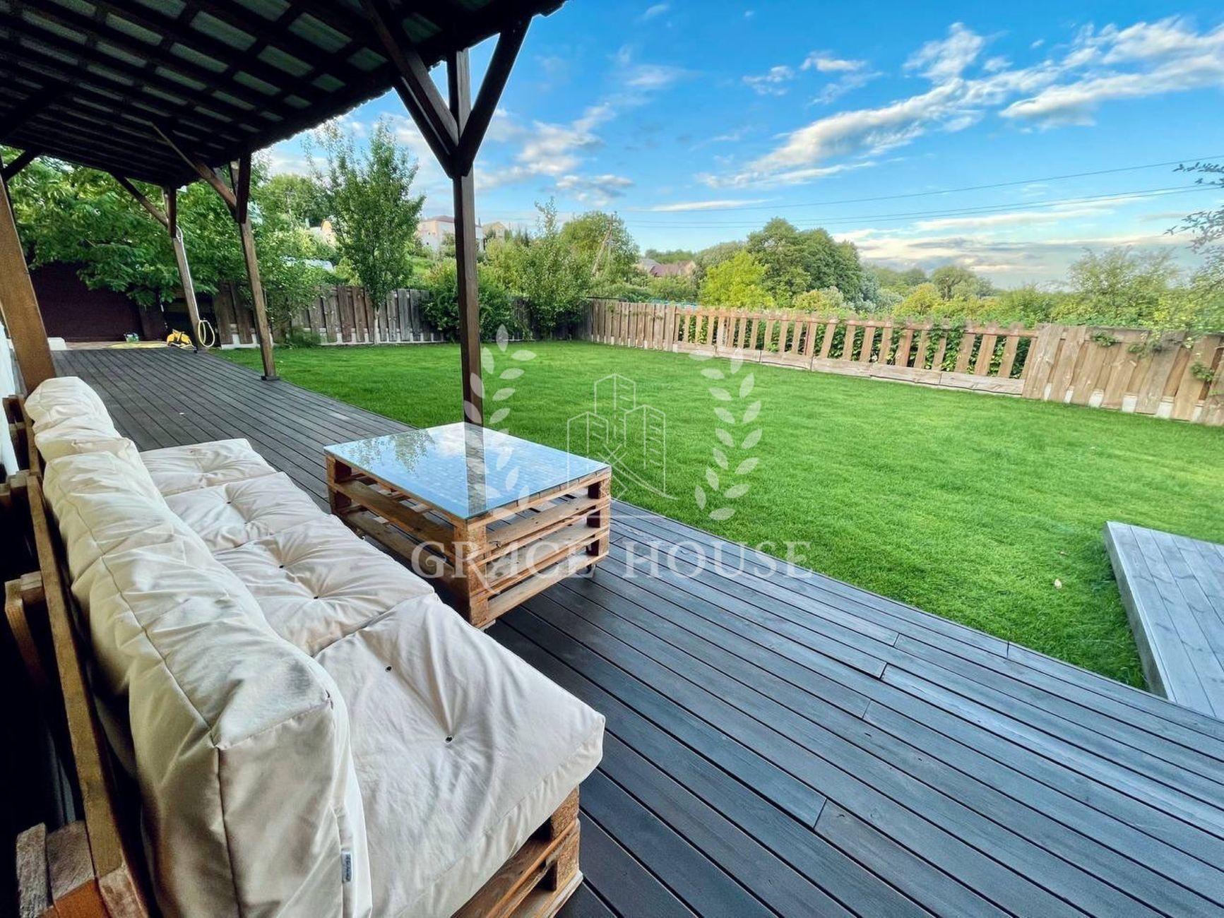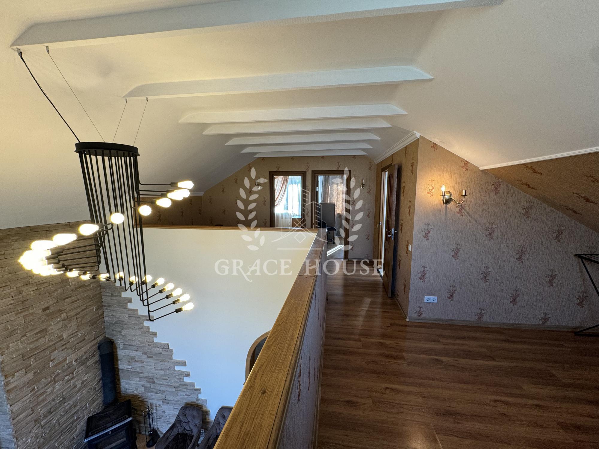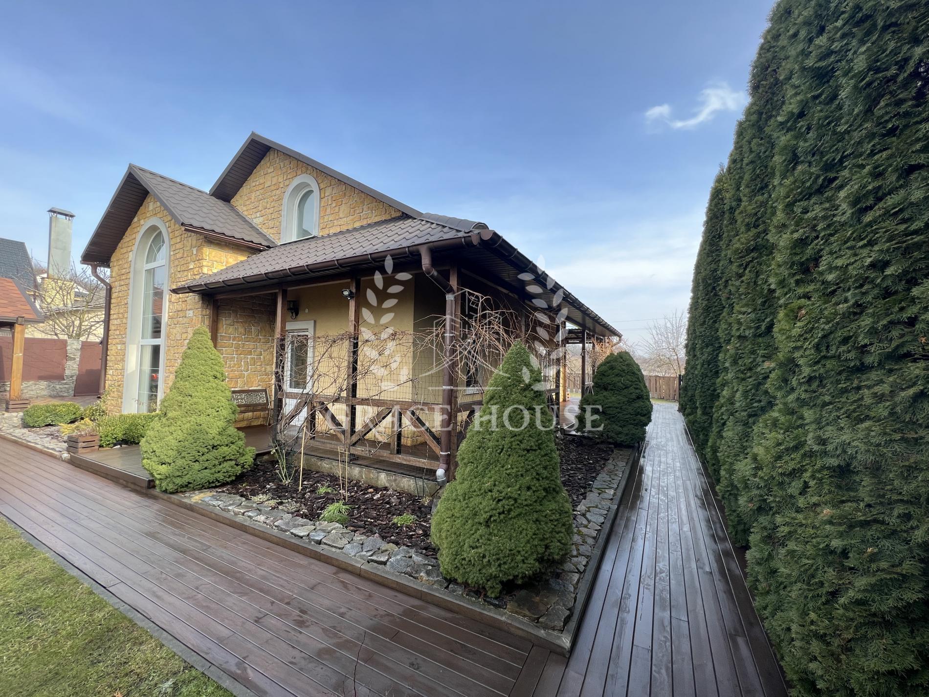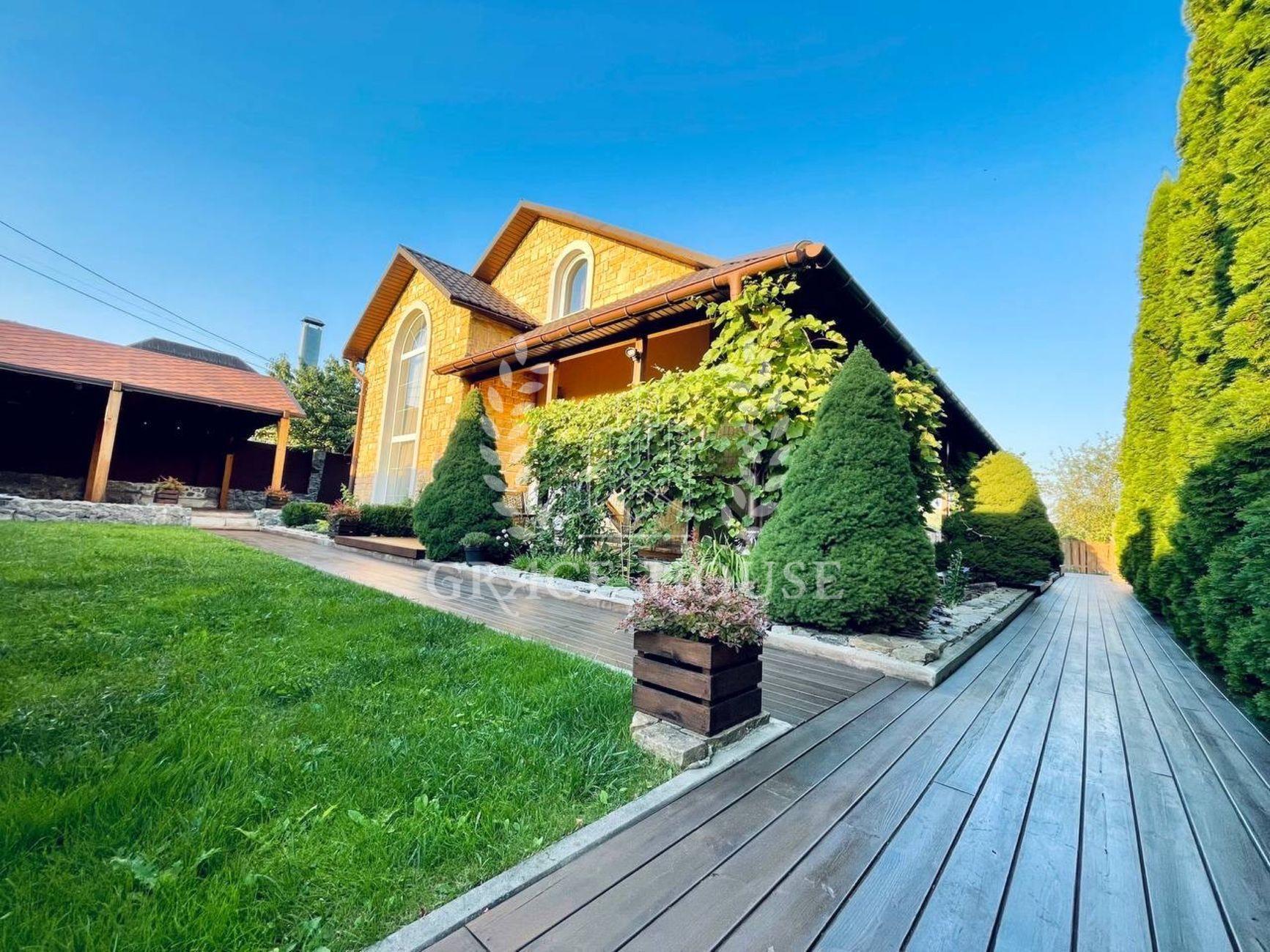 Будинок повністю автономний. Ділянка 6 соток. На території фруктові дерева, виноград. Знаходиться у мальовничому місці, поряд озеро. Є гостьовий блок (в ньому спальня, кухня, з/в з душем). Паркування з навісом на 2 авто, місце для гостьових машин поряд із будинком.