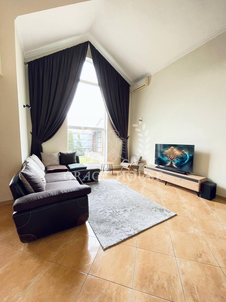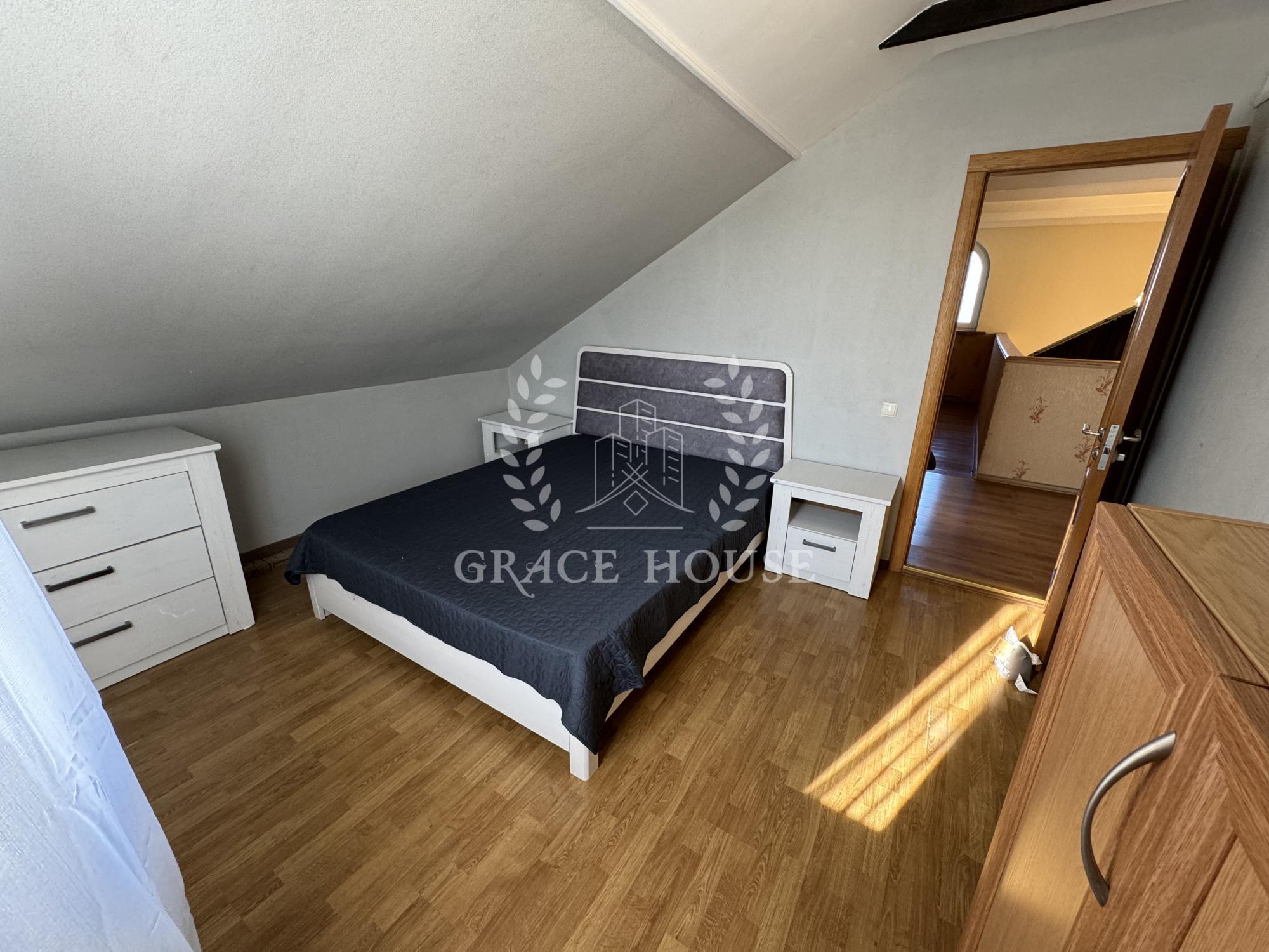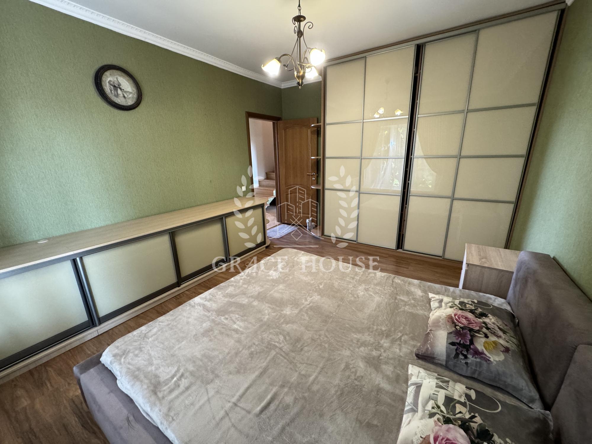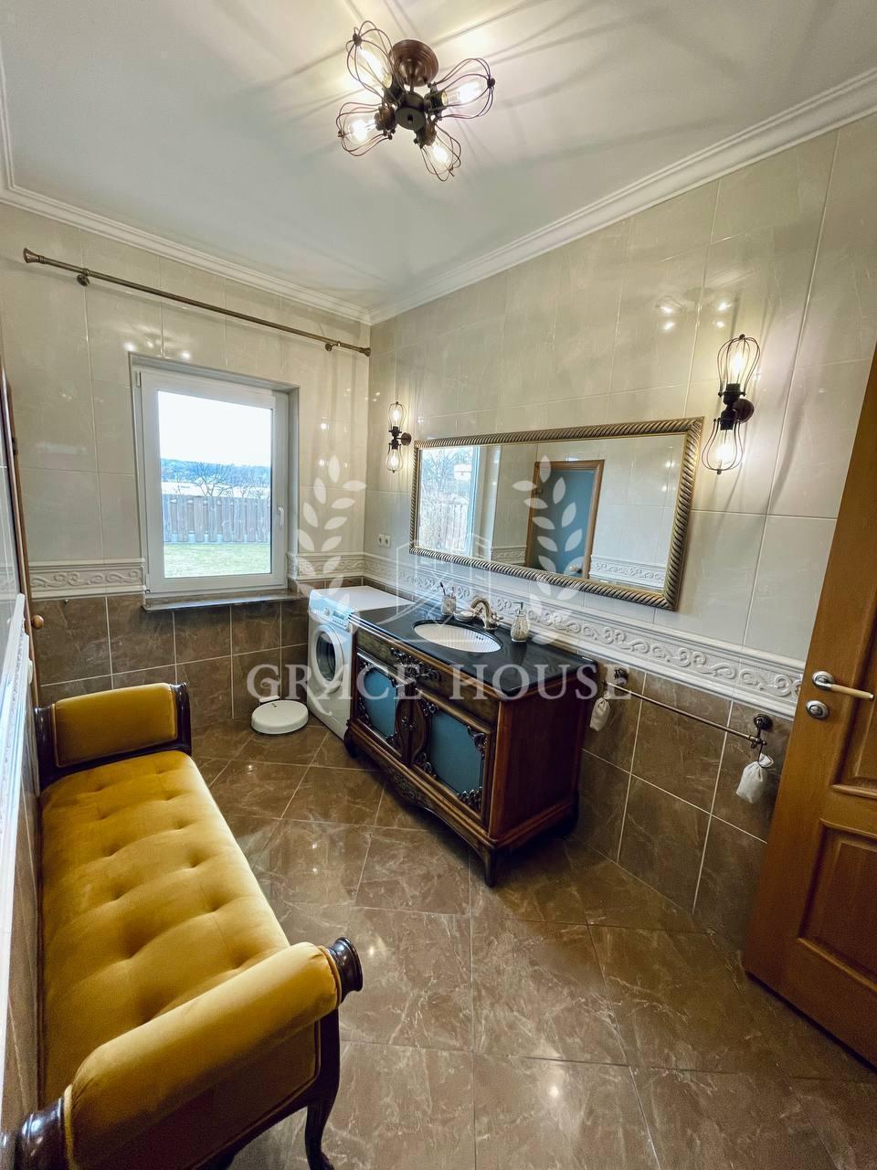 Затишний будинок поряд із парком Феофанія, селище Хотів, Обухівський р-н. Загальною площею 186 м. кв., два поверхи. У будинку на першому поверсі простора кухня-вітальня, спальня, с/в, сауна, душова. Другий поверх – дві спальні, з/в з ванною.