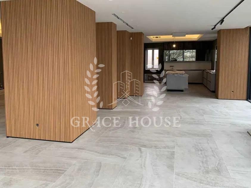 Просторная гостиная с каминной зоной, со столовой и кухней. Камин с топкой double face объединяет гостиную с зимним садом. На цокольном этаже также расположена SPA зона с сауной, фитнес зоной и . На втором этаже расположены 4 спальни, санузел с джакузи, терраса и балкон.