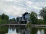 Три окремі кімнати (включно з «головною спальнею» з ванною кімнатою та великою шафою), кухня-студія з двома окремими коморами, камінна кімната з 6-метровими стелями та виходом на велику терасу (52 м²) з видом на воду, вітальня з двома гардеробними, котельня/пральня, літня кухня під терасою зі скляним пірамідальним світловим люком і виходом до пірсу з укріпленим берегом. Критий простір для двох авто із секційними автоматичними воротами та підсобними приміщеннями. Усі кімнати, кухня, вітальня та камінний зал мають панорамні алюмінієві вікна та окремі виходи через розсувні двері до внутрішнього двору та пірсу.